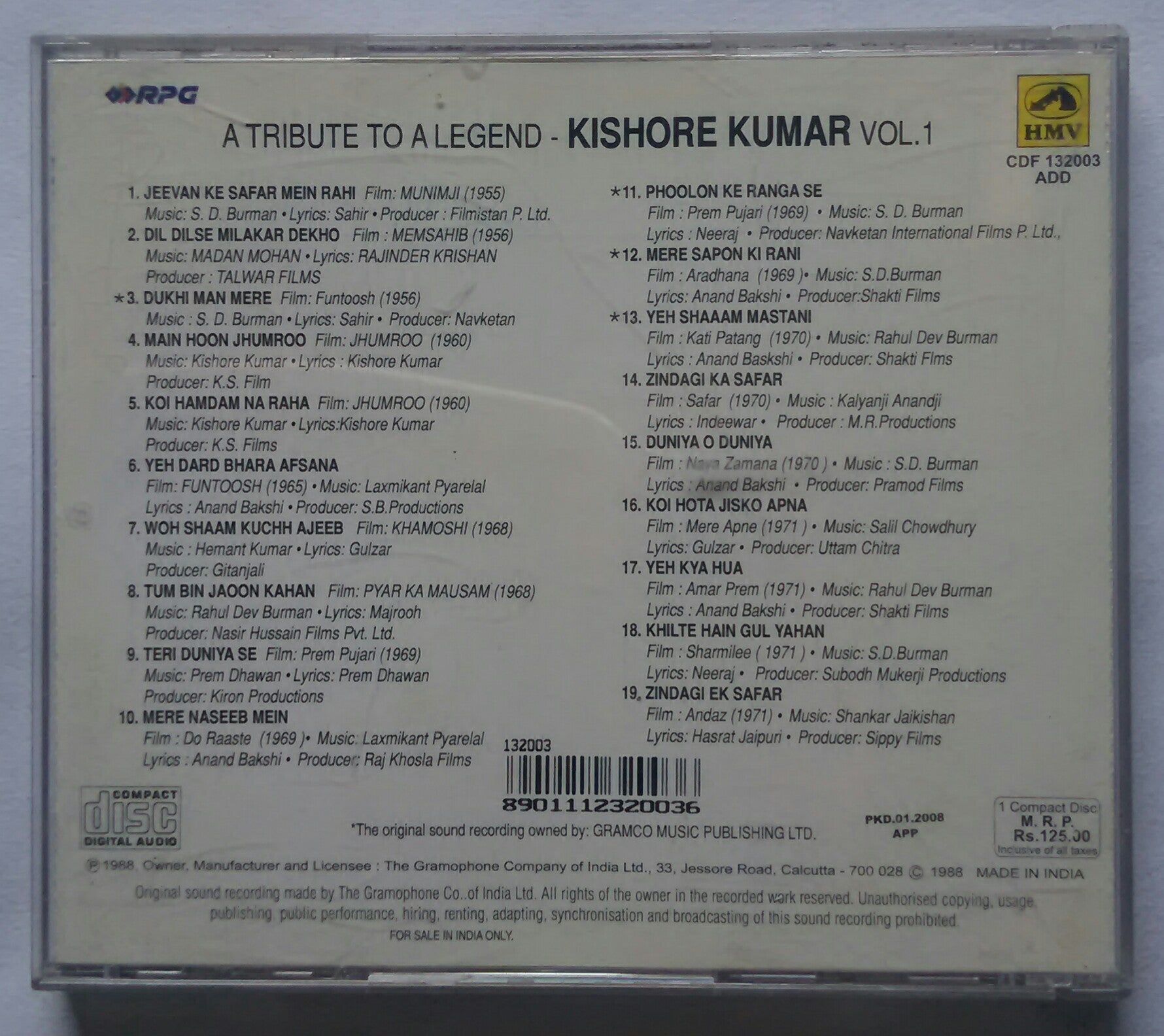 A Tribute To A Legend - Kishore Kumar " Vol :1 "