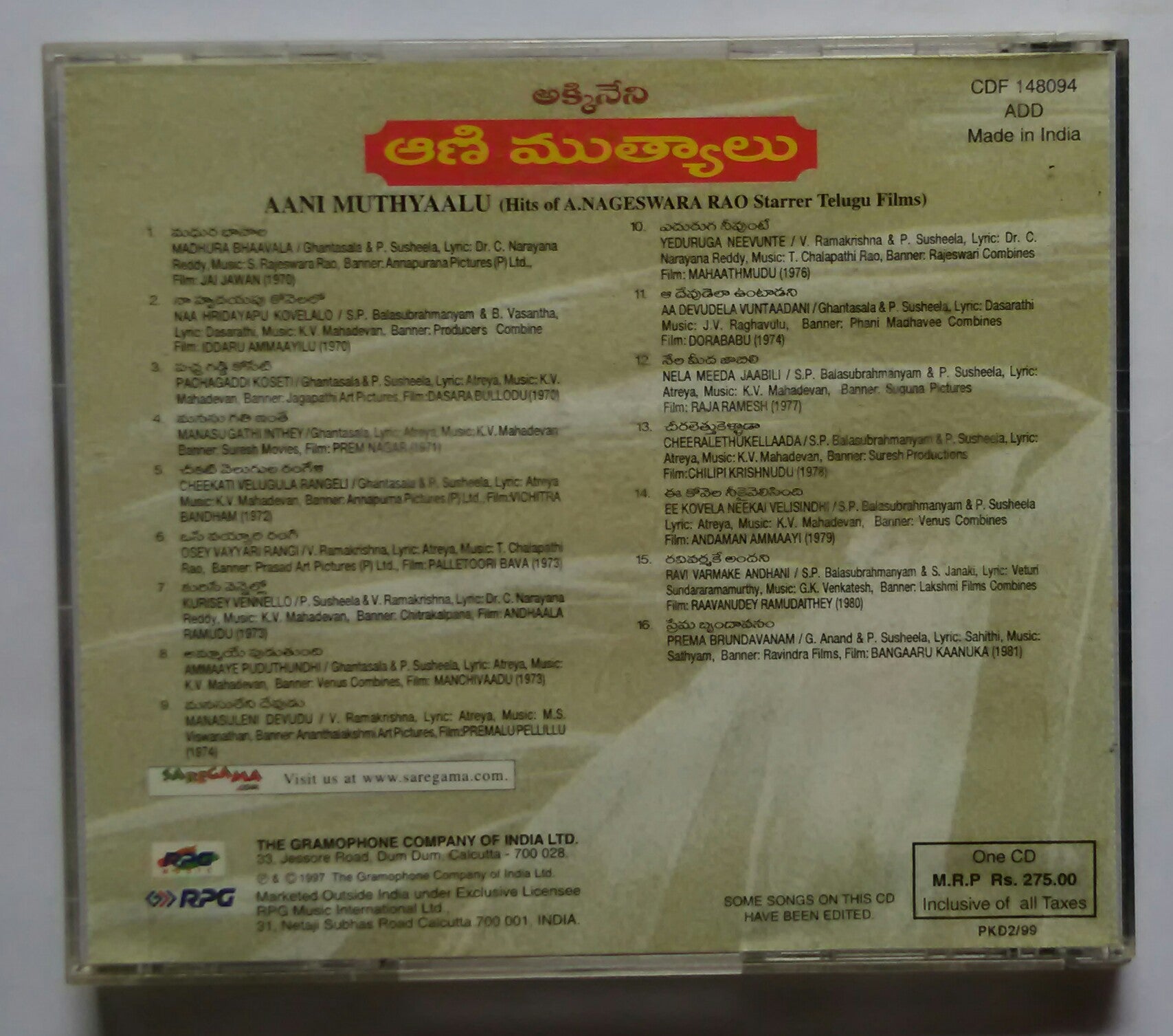 Aani Muthyaalu ( Hits Of A. N.ageswara Rao Starrer Telugu Films ) Vol - 5