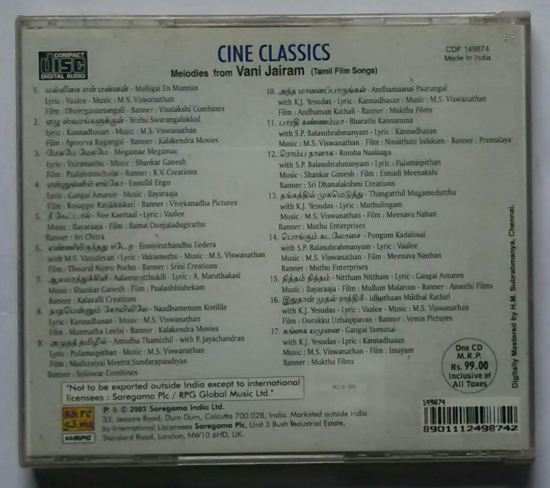 Cine Ckassics - Melodies From Vani Jairam " Tamil Film Songs "