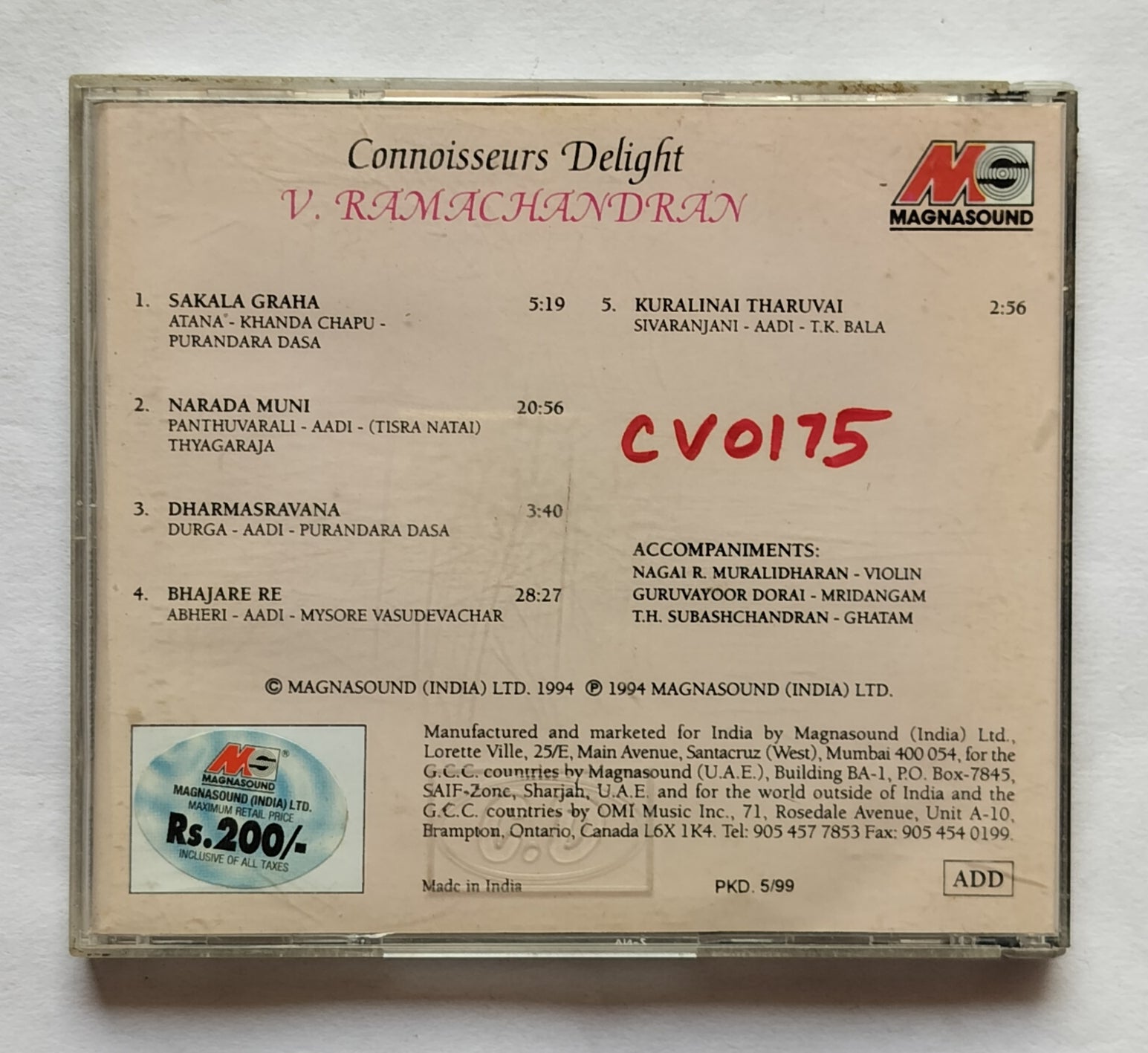 Connoisseurs Delight V. Ramachandran " Carnatic Classical Vocal Music "