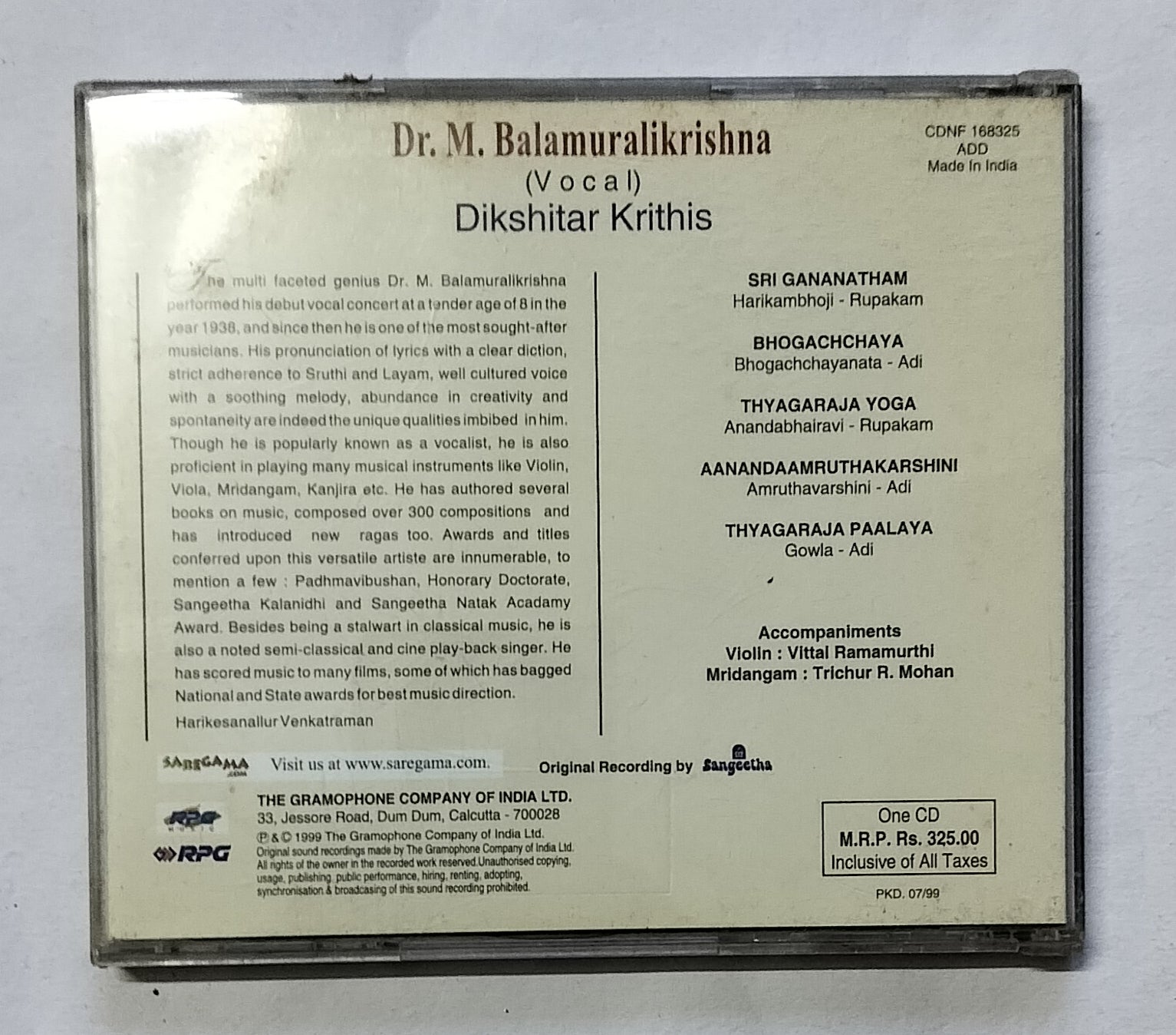 Dikshithar Krithis ( Vocal ). Dr. M. Balamuralikrishna