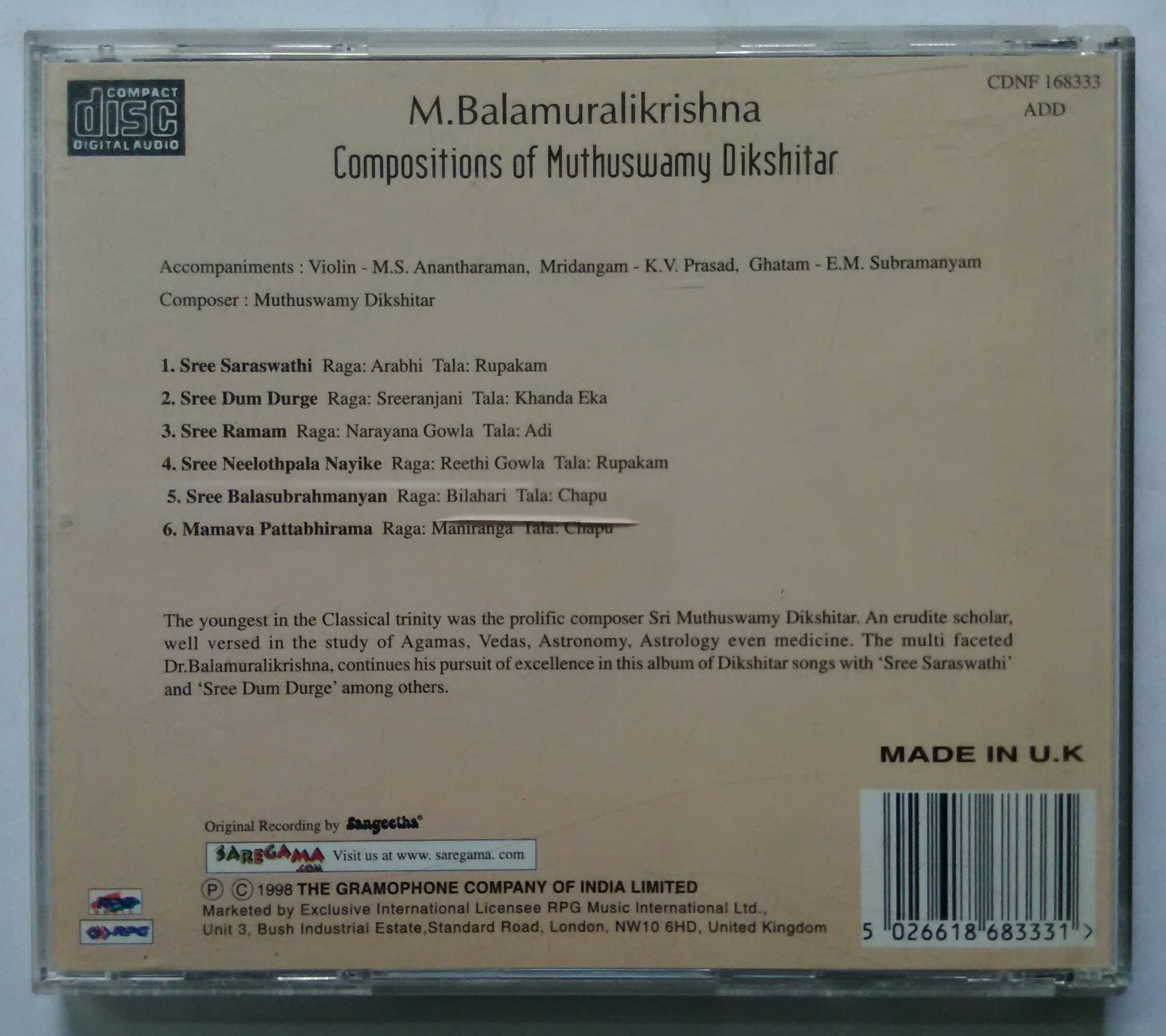 Dr. M. Balamuralikrishna - Compositions of Muthuswamy Dikshidar