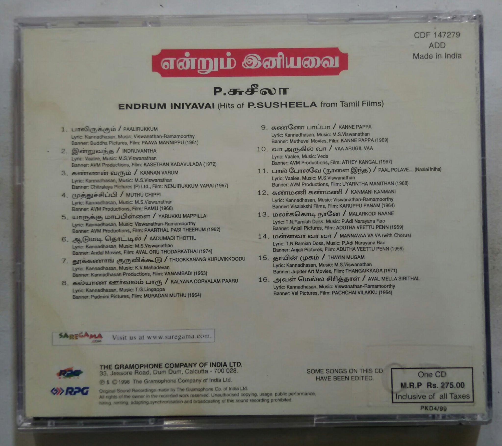 Endrum Iniyavai ( Hits Of P. Susheela From Tamil Films Vol - 1 )