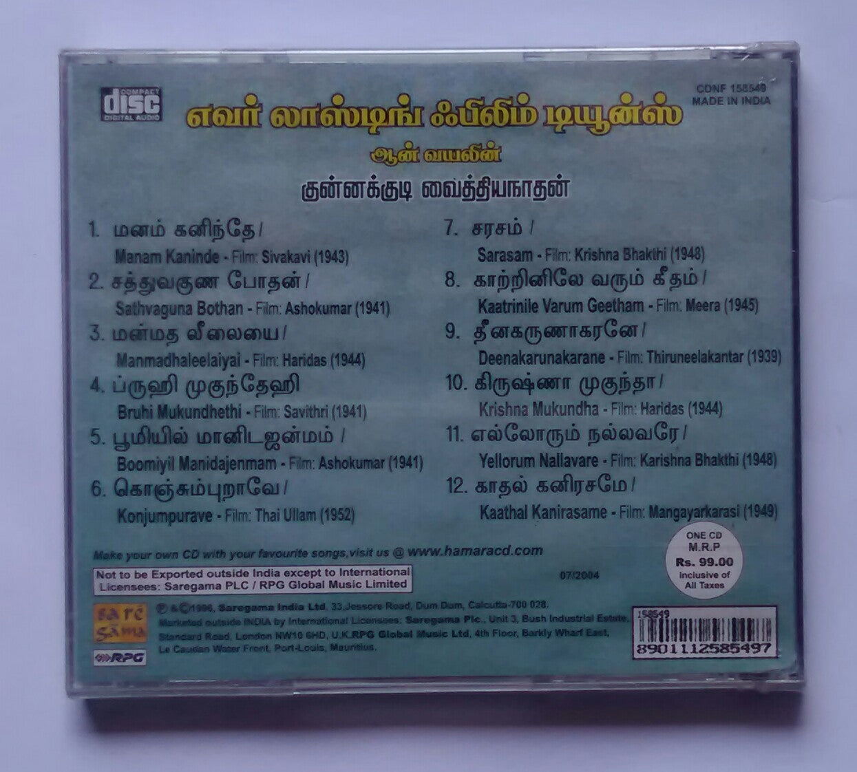 Everlasting Film Tunes - On Violin Kunnakkudi Vaidyanthan " Tamil Film Hits "