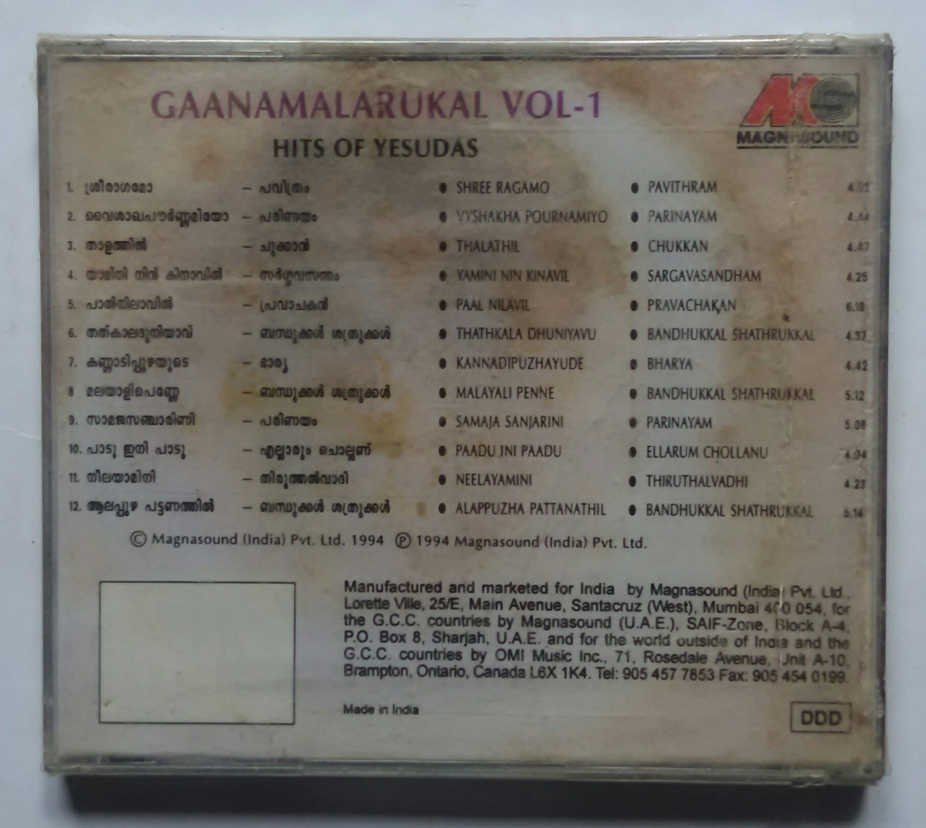 Gaanamalarukal Vol - 1 " Hits Of Yesudas " Malayalam
