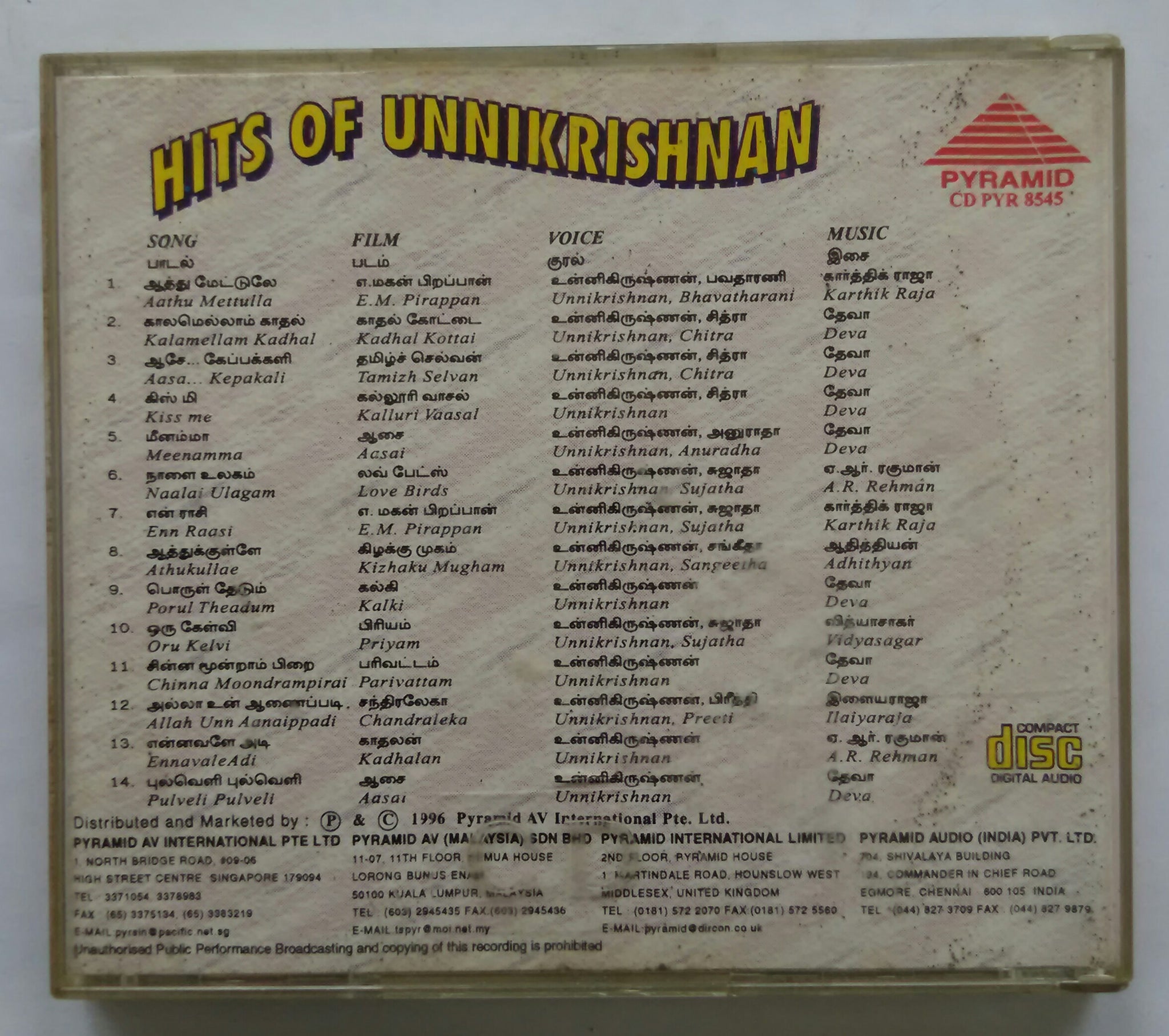Hits Of Unnikrishnan ( Tamil Film Songs )