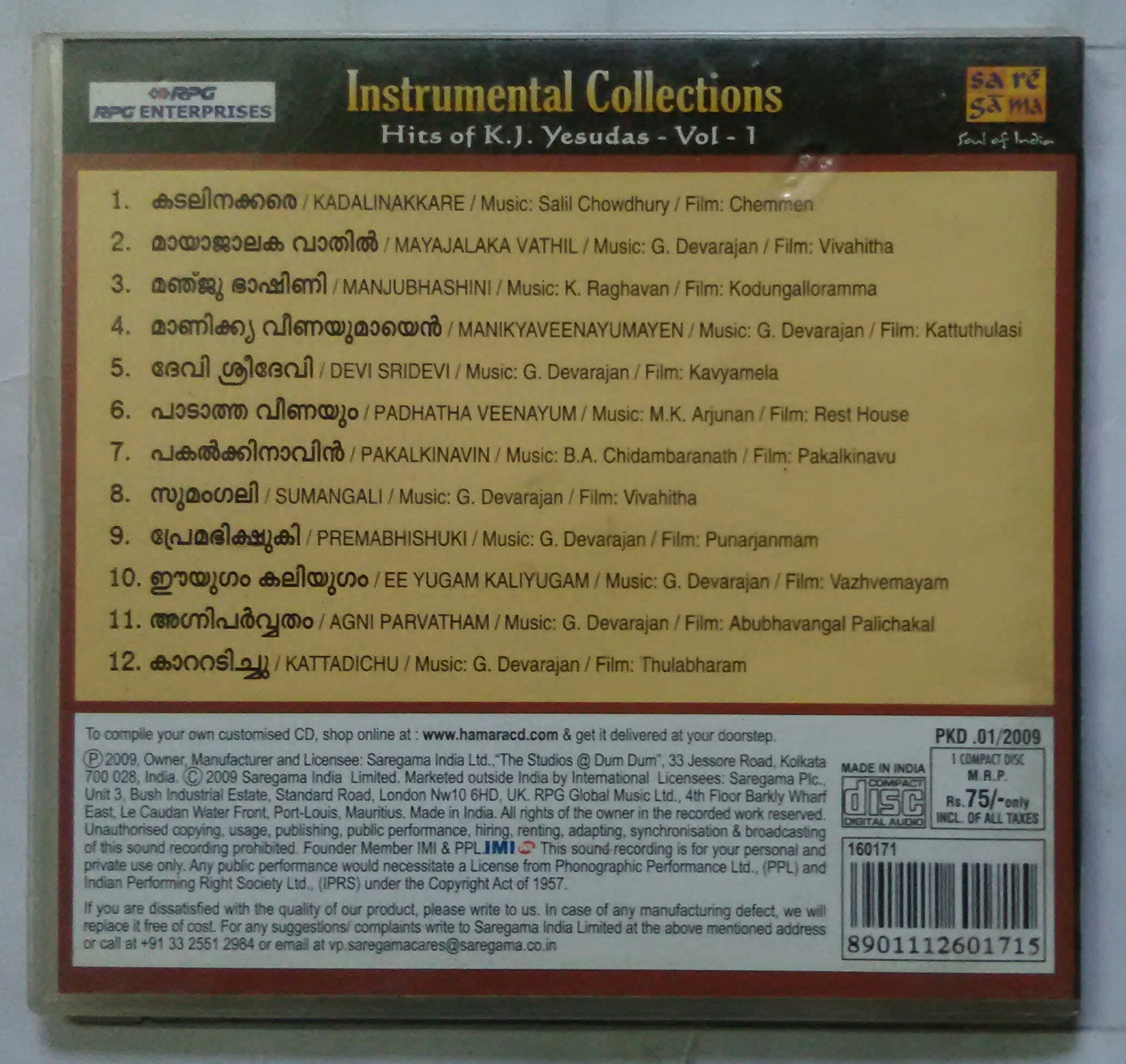 Instrument Collections Hits Of K. J . Yesudas Vol -1