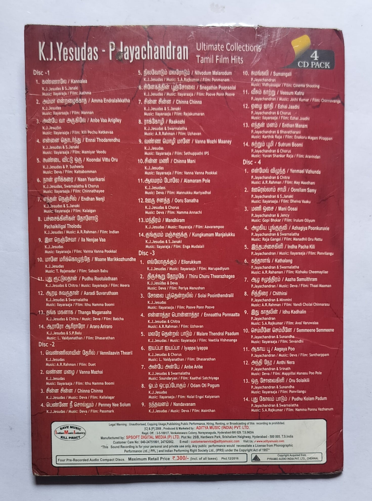K. J. Yesudas - P. Jayachandra Ultimate Collection Tamil Film Hits " 4 CD Pack "