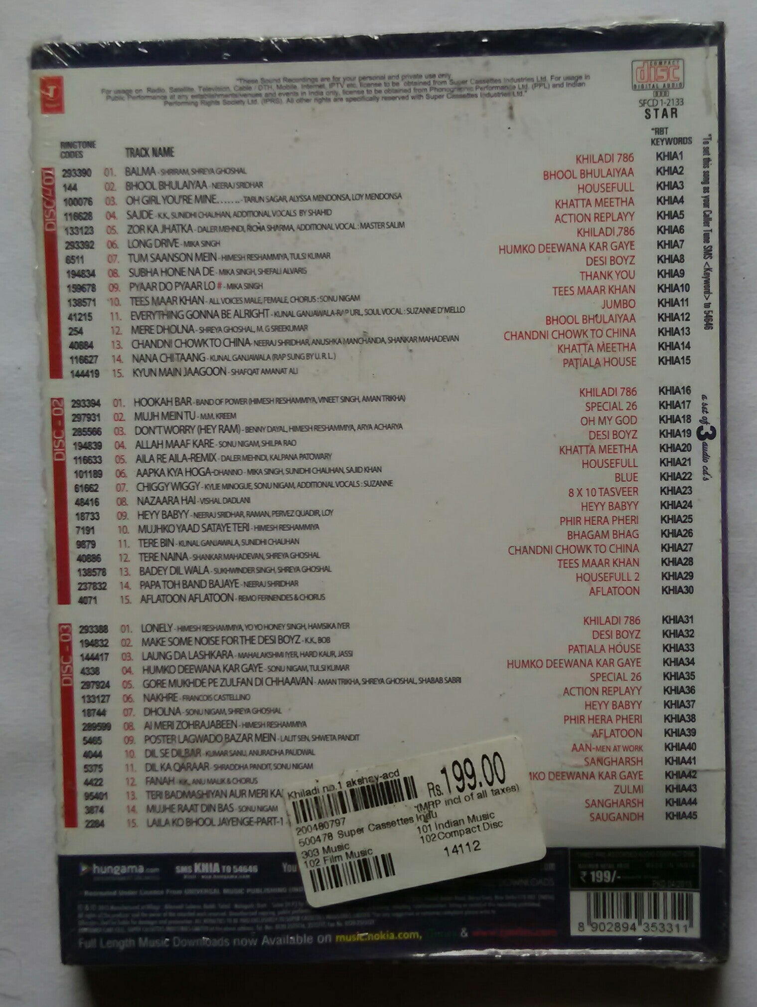 Khiladi No :1 Akshay Kumar " A Set Of 3 ACD's "