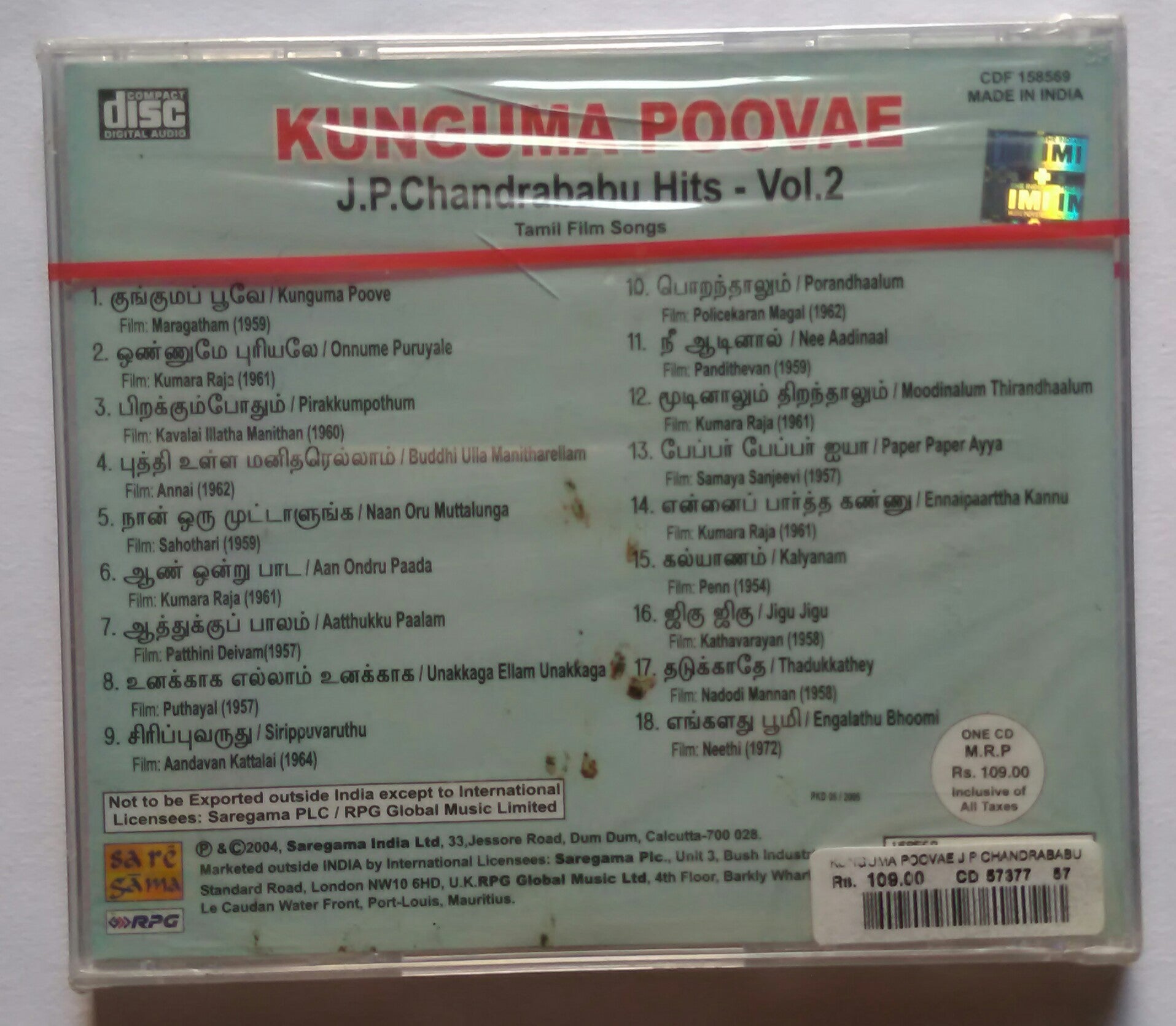 Kunguma Poovae - J. P. Chandrababu Hits - Vol :2