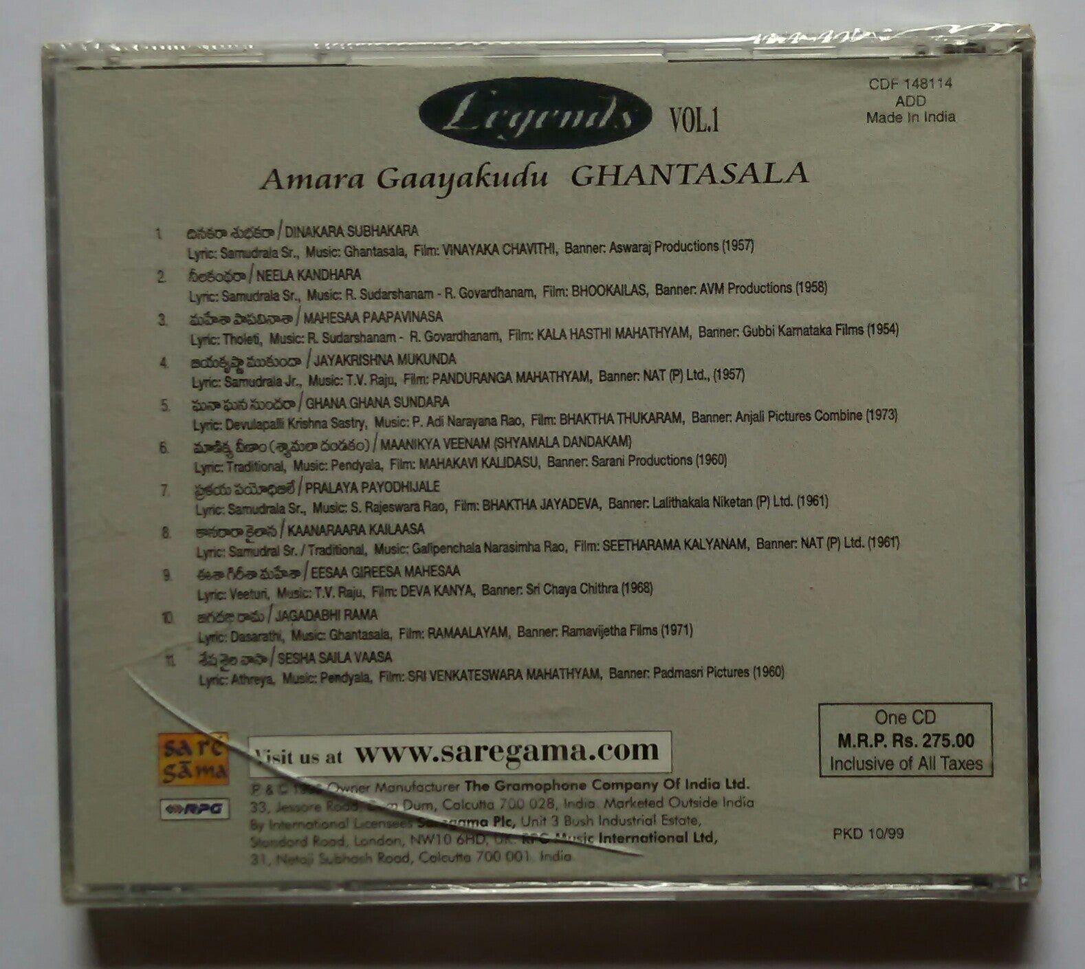 Legends - Amara Gaayakudu Ghantasala " Vol -1 "