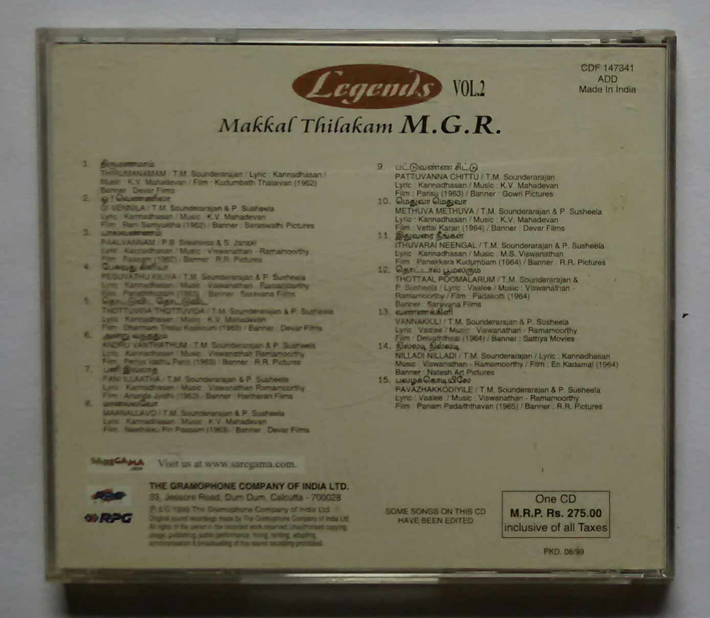 Legends - Makkal Thilakam M. G. R. Tamil Films Songs " Vol :2 "