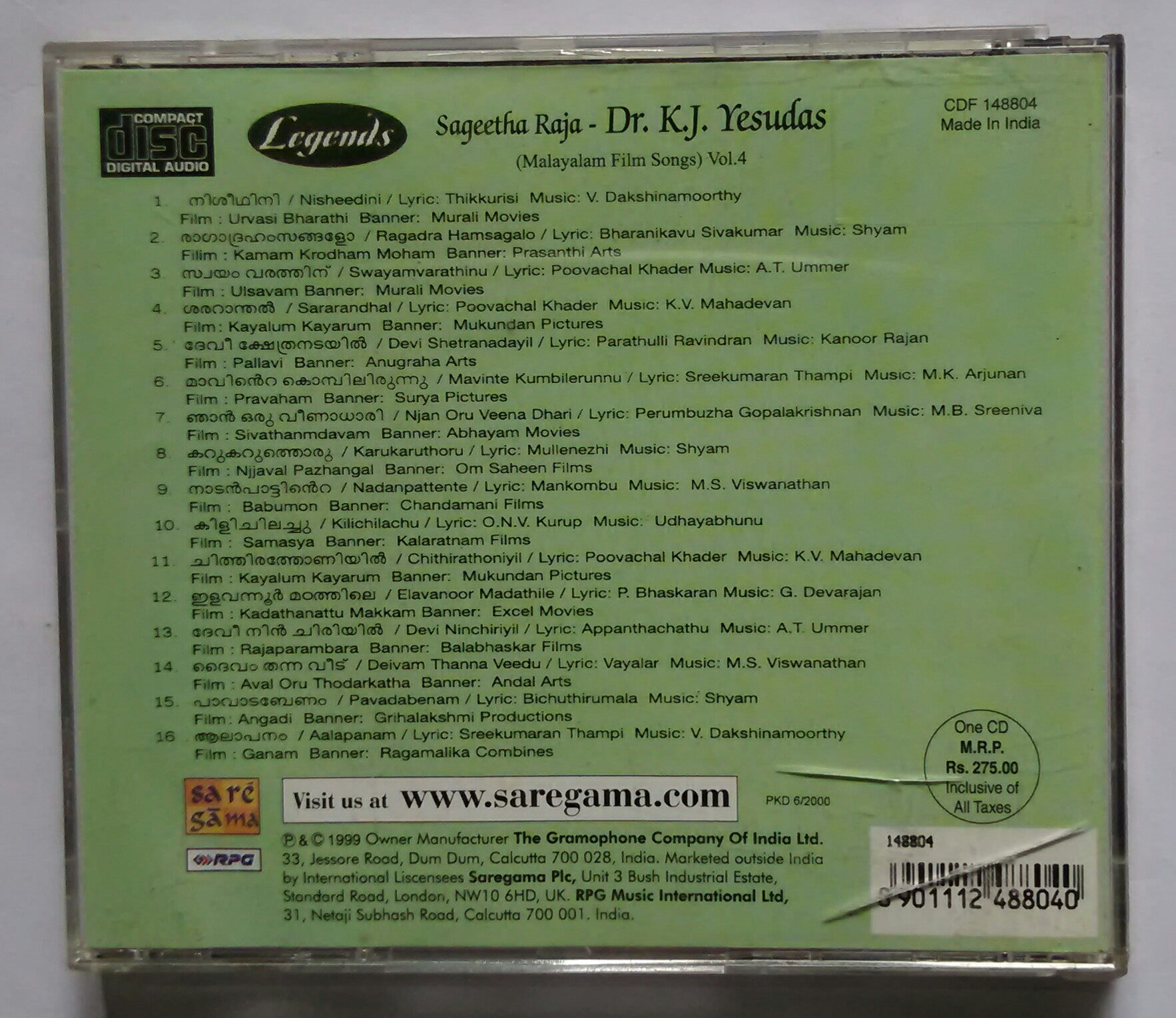 Legends Sageetha Raja - Dr. K. J. Yesudas ( Malayalam Film Songs ) Vol :4