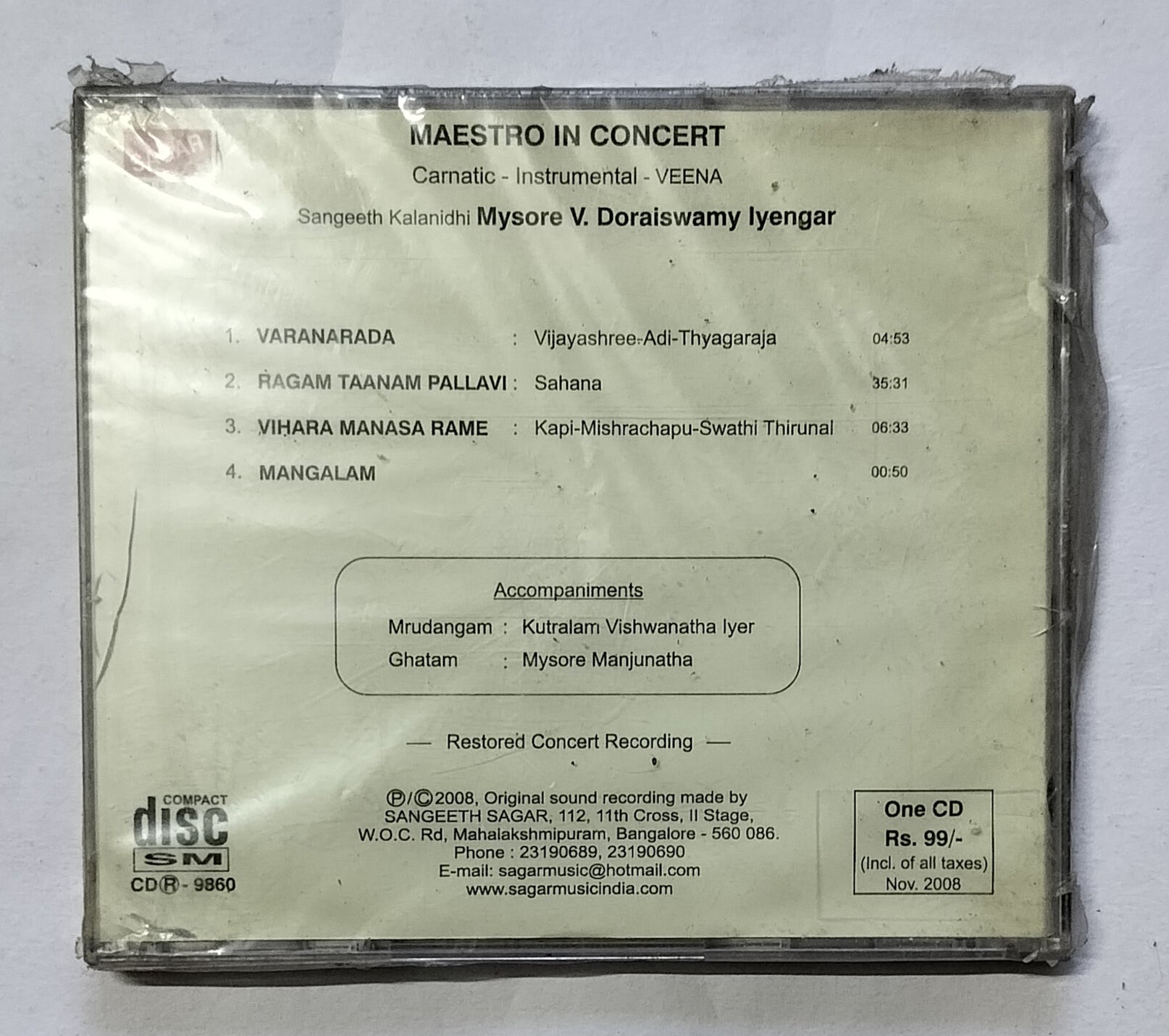 Maestro In Concert - Sangeeth Kalanidhi Mysore V. Doraiswamy Iyengar " Vol : 2 "
