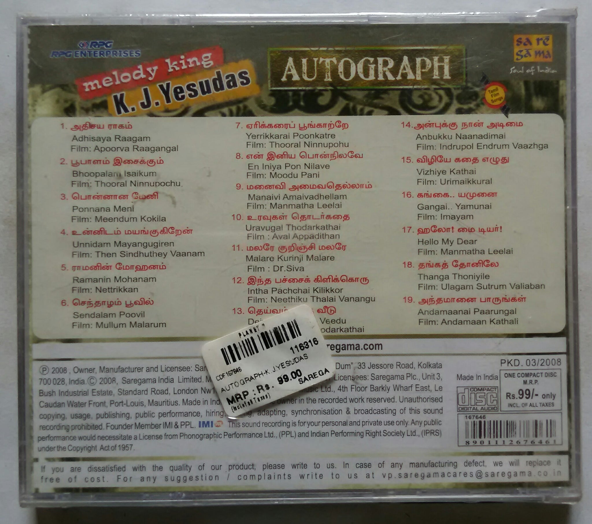 Melody King K.J. Yesudas ( Autograph )