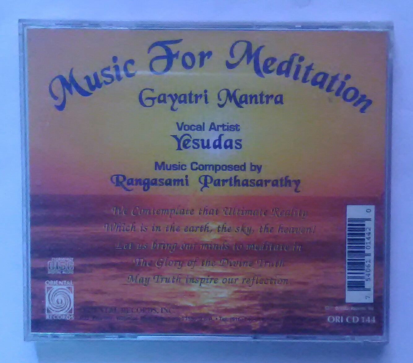 Music For Mediation - Gayati Mantra " Vocal Artist : Yesudas , Music Composed by : Rangasami Parthasarathy "