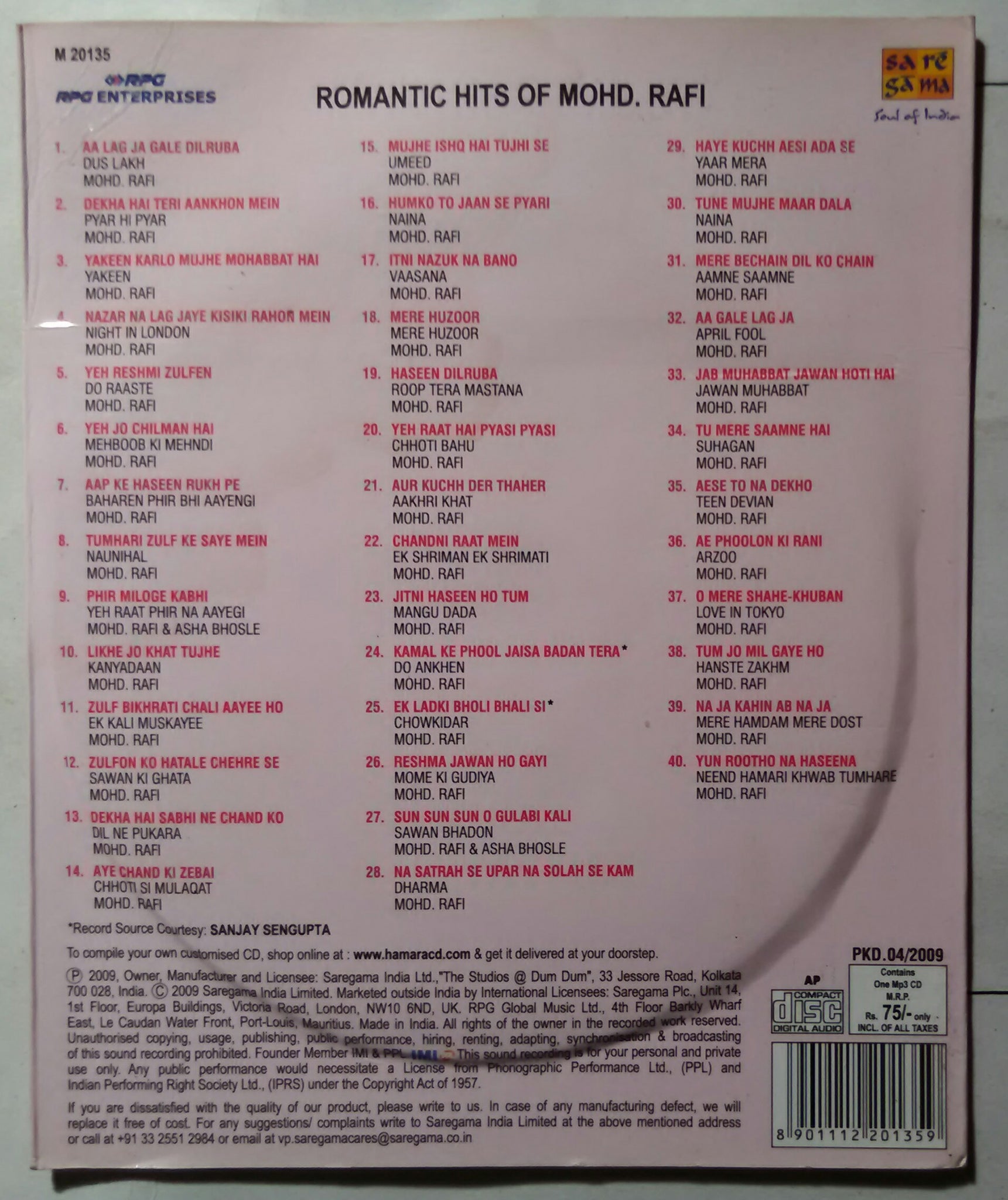 Romantic Hits Of Mohd Rafi ( MP3 )