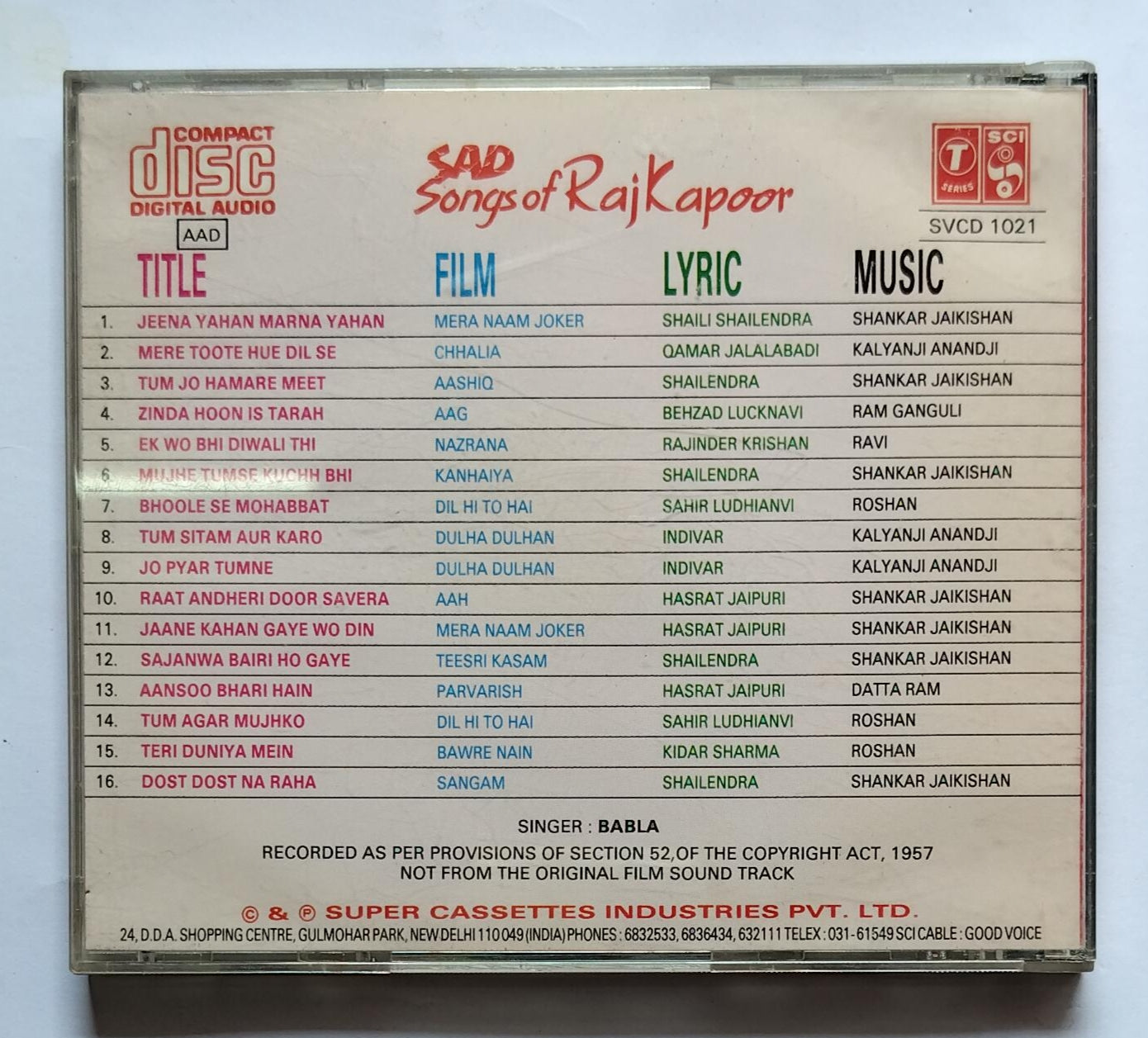 Sad Songs Of Raj Kapoor " Singer : Babla "