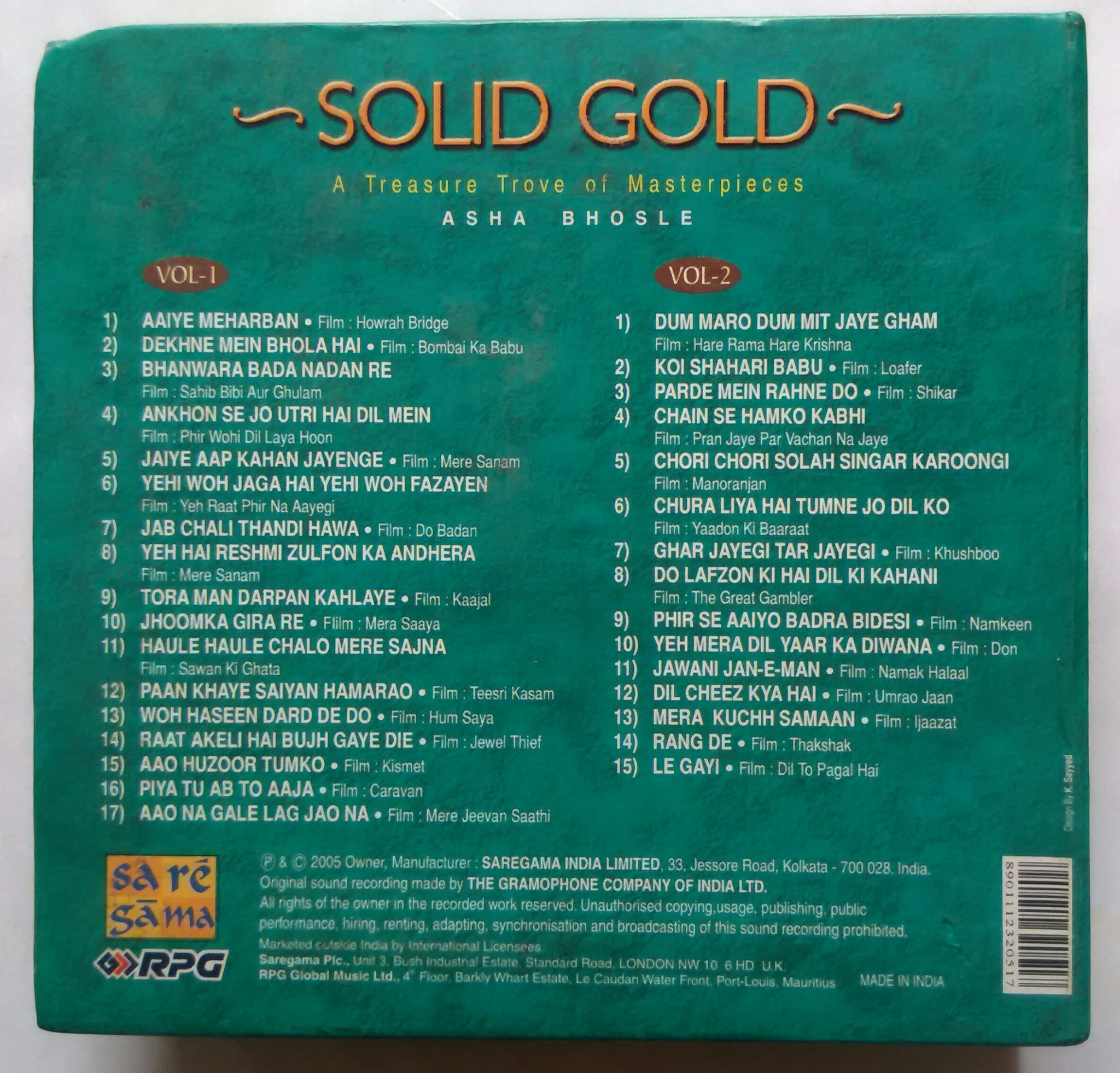Solid Gold A Treasure Trove Of Masterpieces Asha Bhosle ( 2 CD collection )