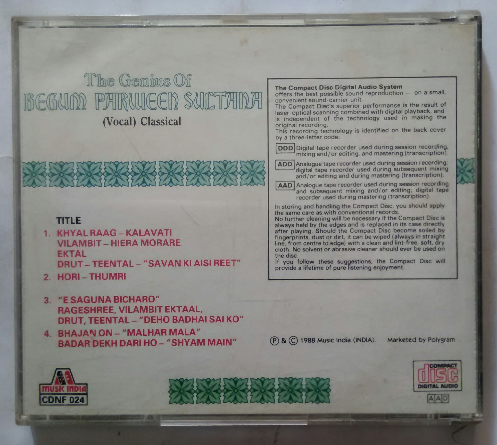The Genius Of Begum Parween Sultana ( Vocal Classical )