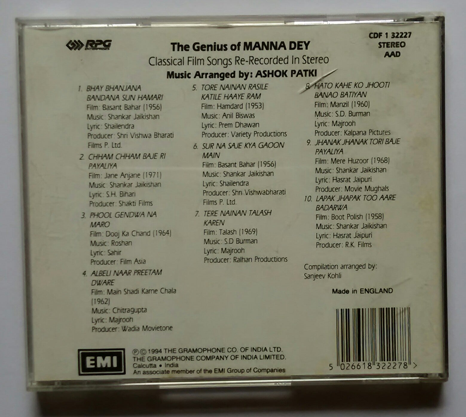 The Genius Of Manna Dey " Classical Film Songs , Re - Recorded In Stereo "