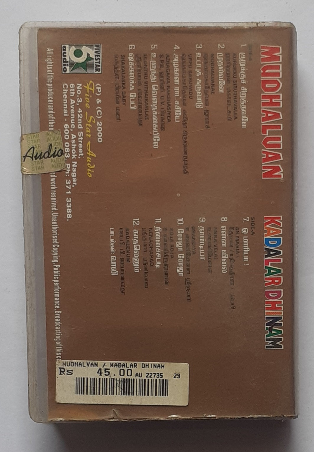 Mudhalvan / Kadalar Dhinam " Music: A. R. Rahman "