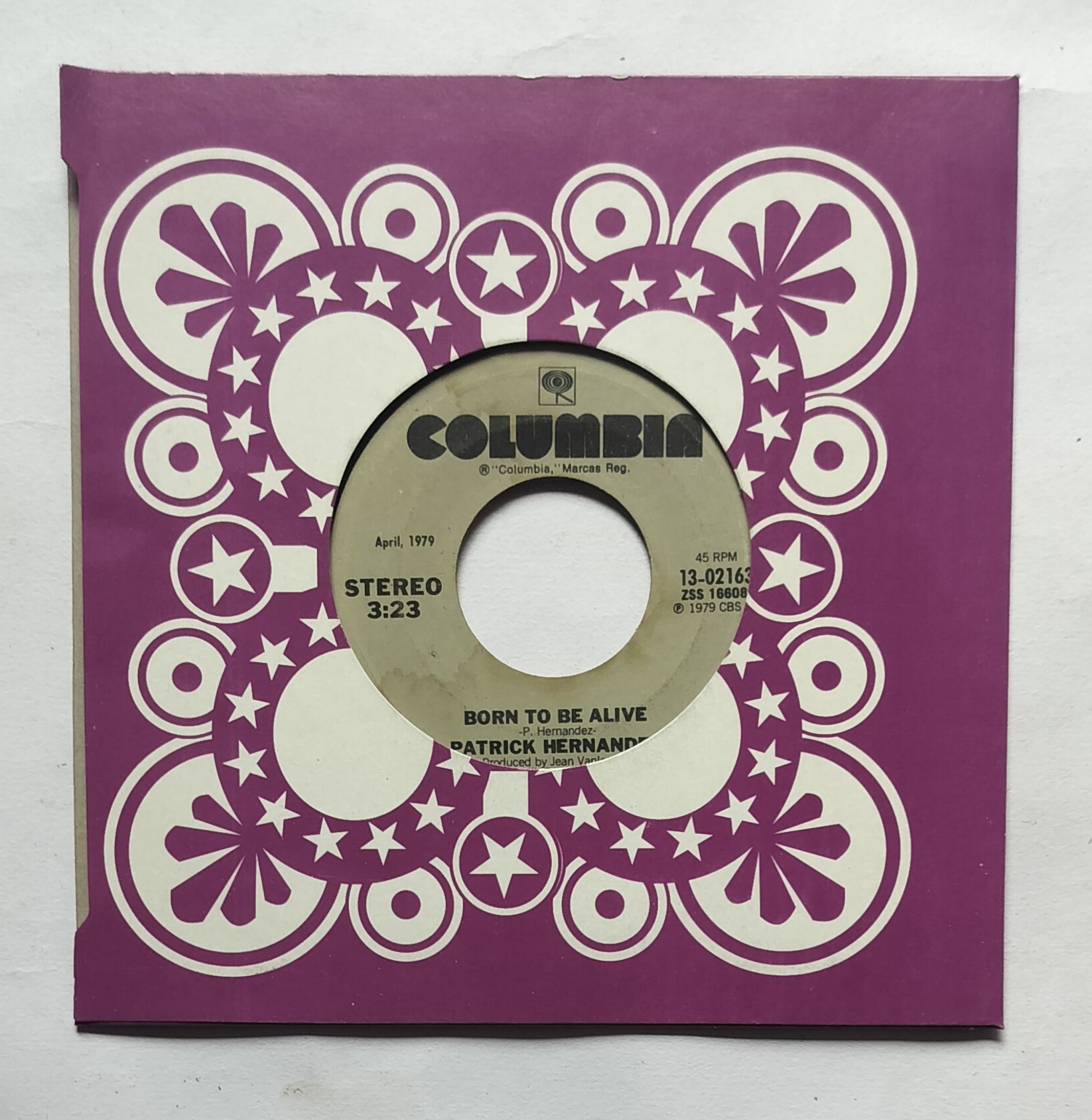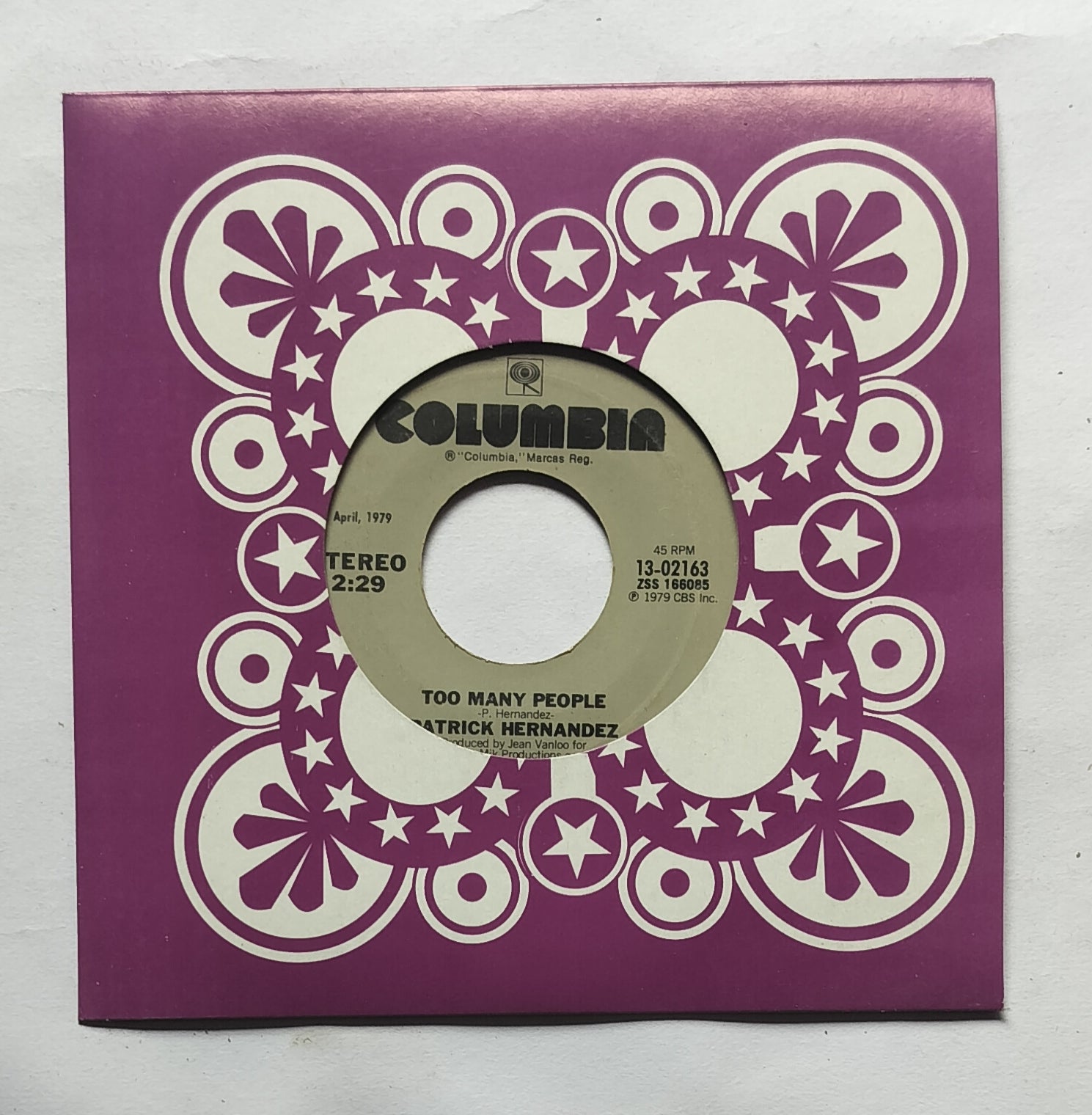 Patrick Hernandez " EP, 45 RPM " Side A : Too Many People , Side B : Born To Be Alive .