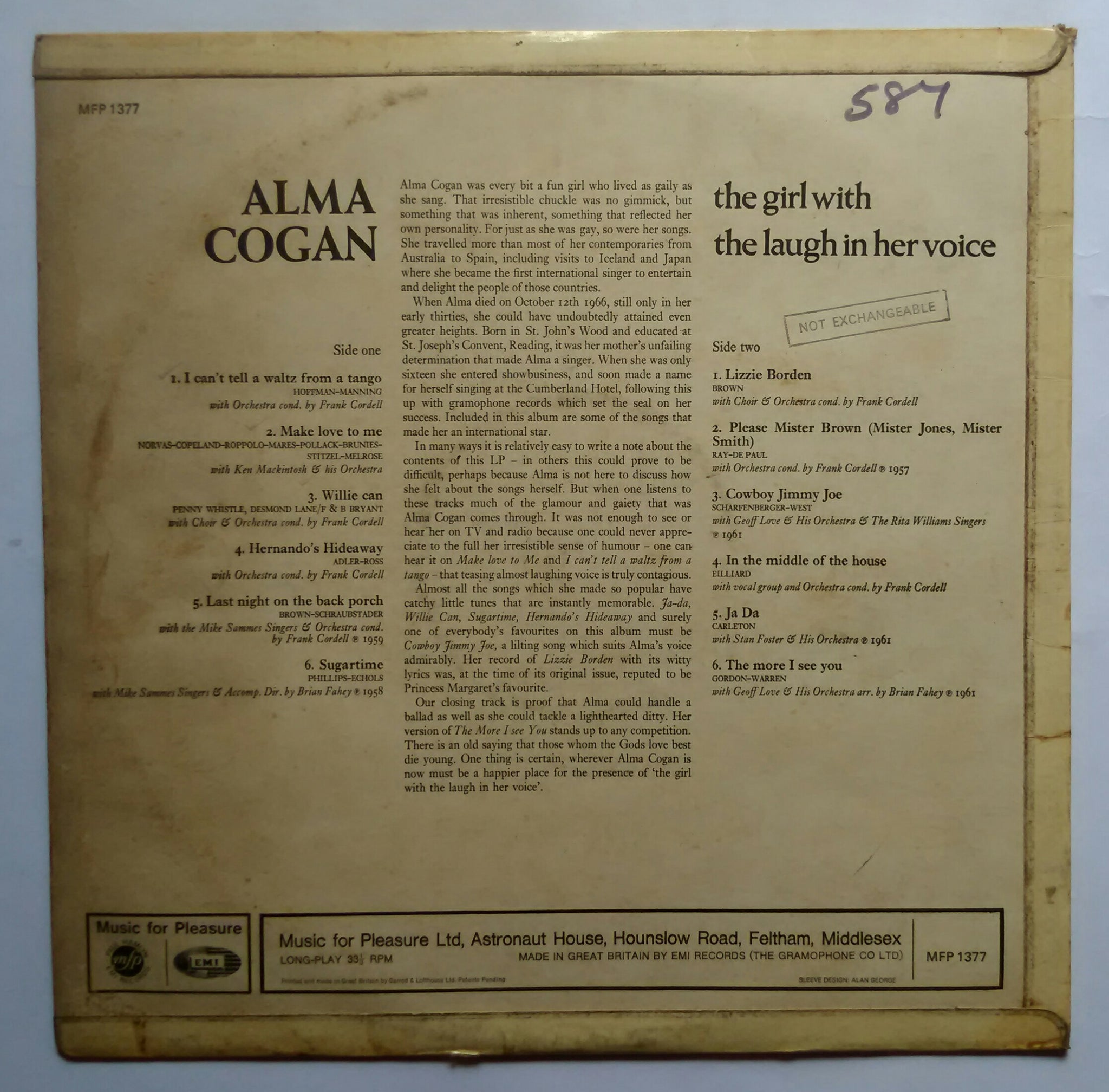 Alma Cogan " The Girl With The Laugh In Her Voice Sings "