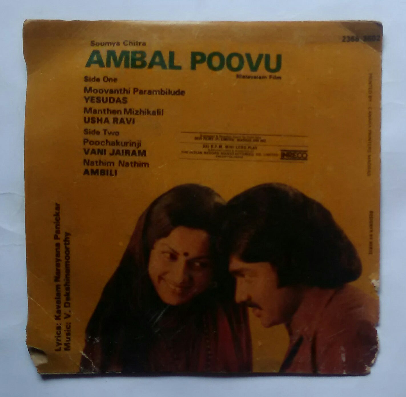 Anbal Poovu ( Mini LP , 33/ RPM ) Music : V. Dekshinamoorthy