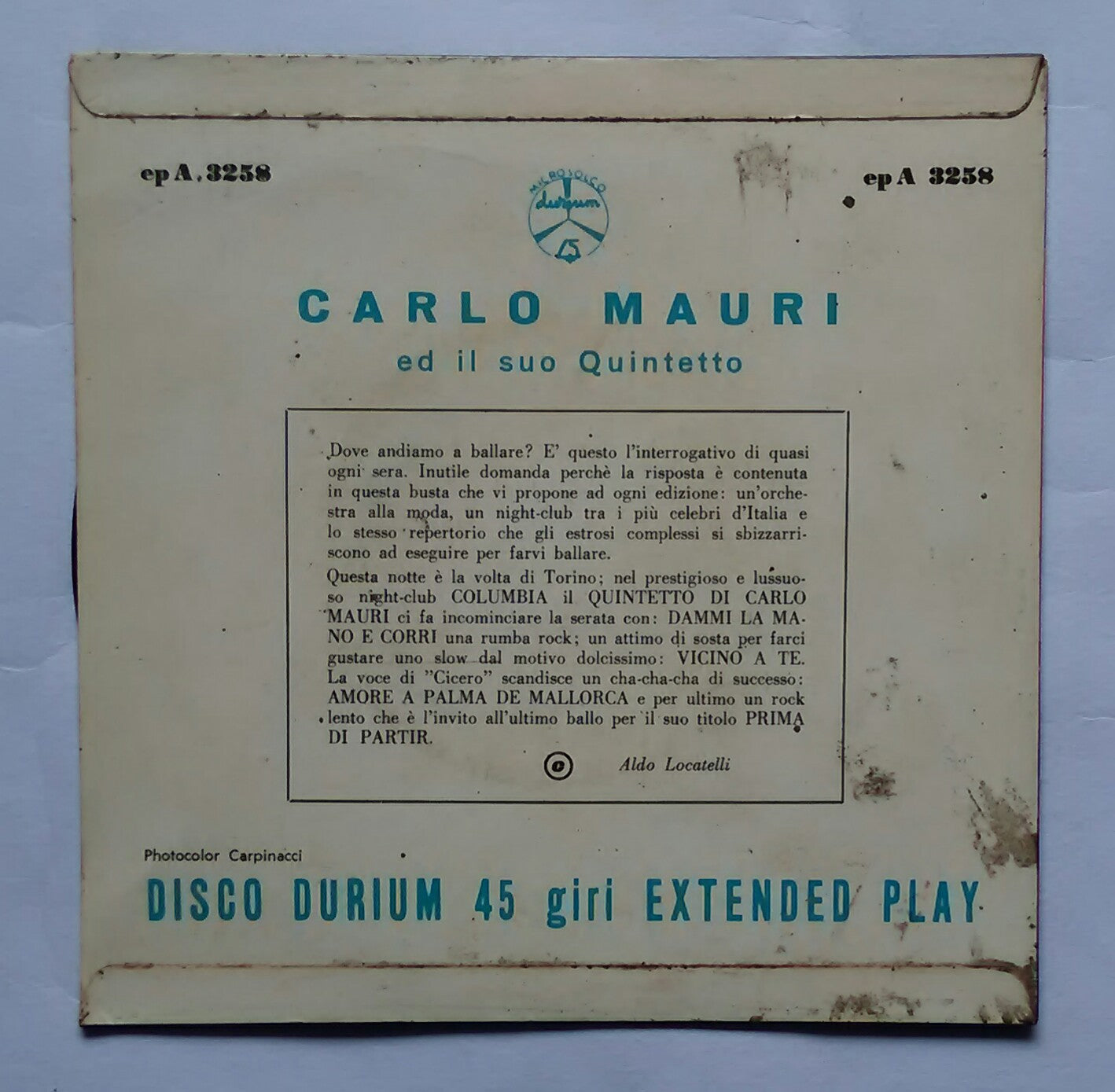 Carlo Mauri - Con il suo quintetto " EP , 45 RPM "