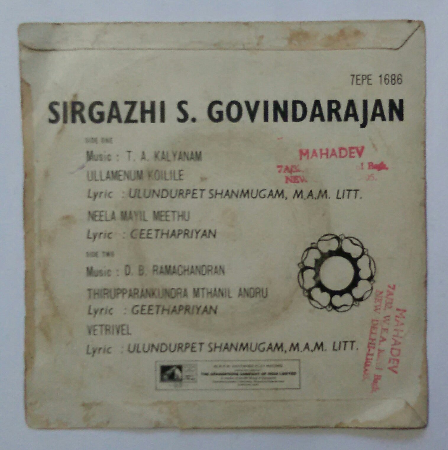 Sirgazhi S. Govindarajan " Devotional " ( EP , 45 RPM )