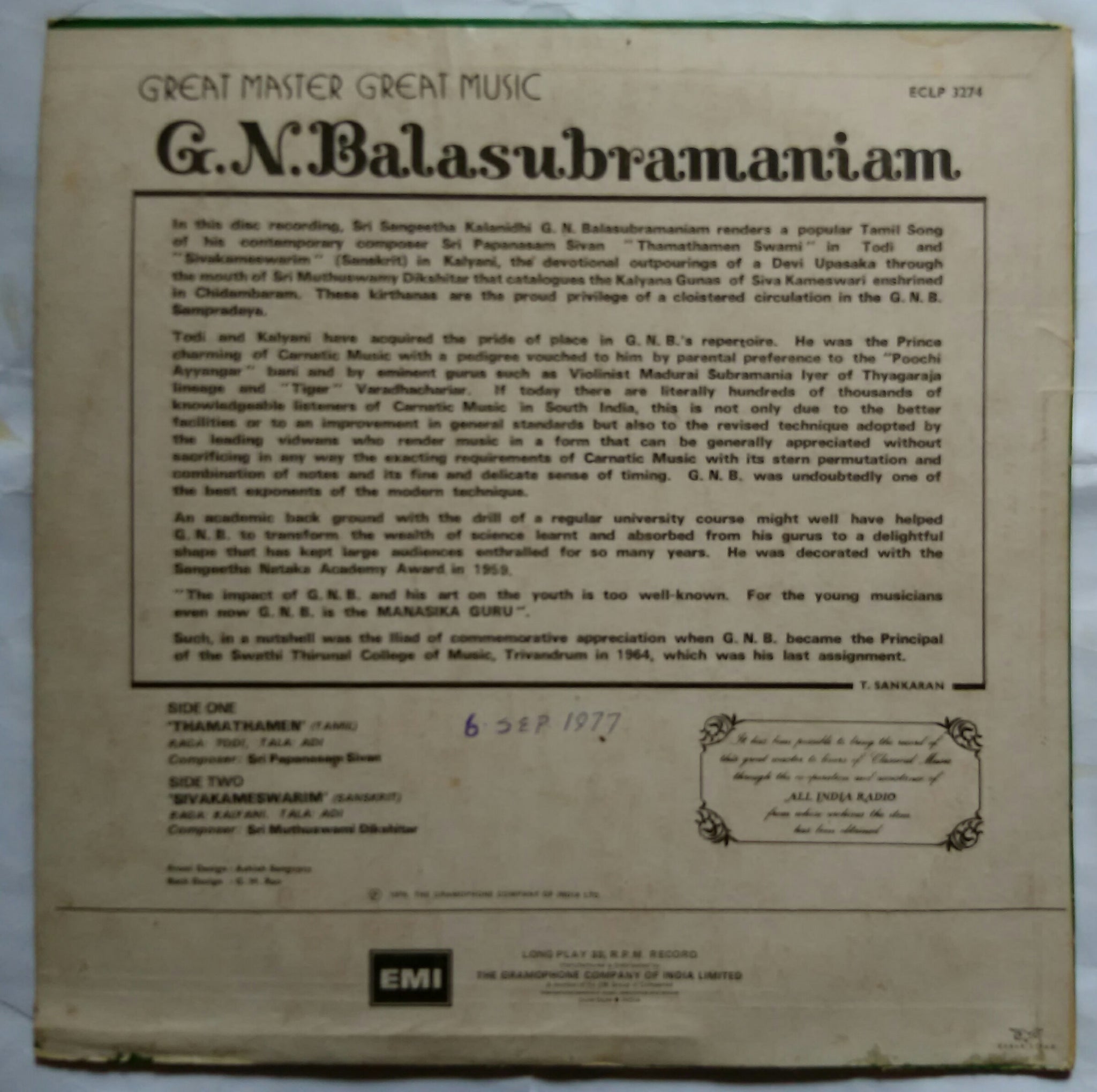 Great Master Great Music : G. B. Balasubramaniam