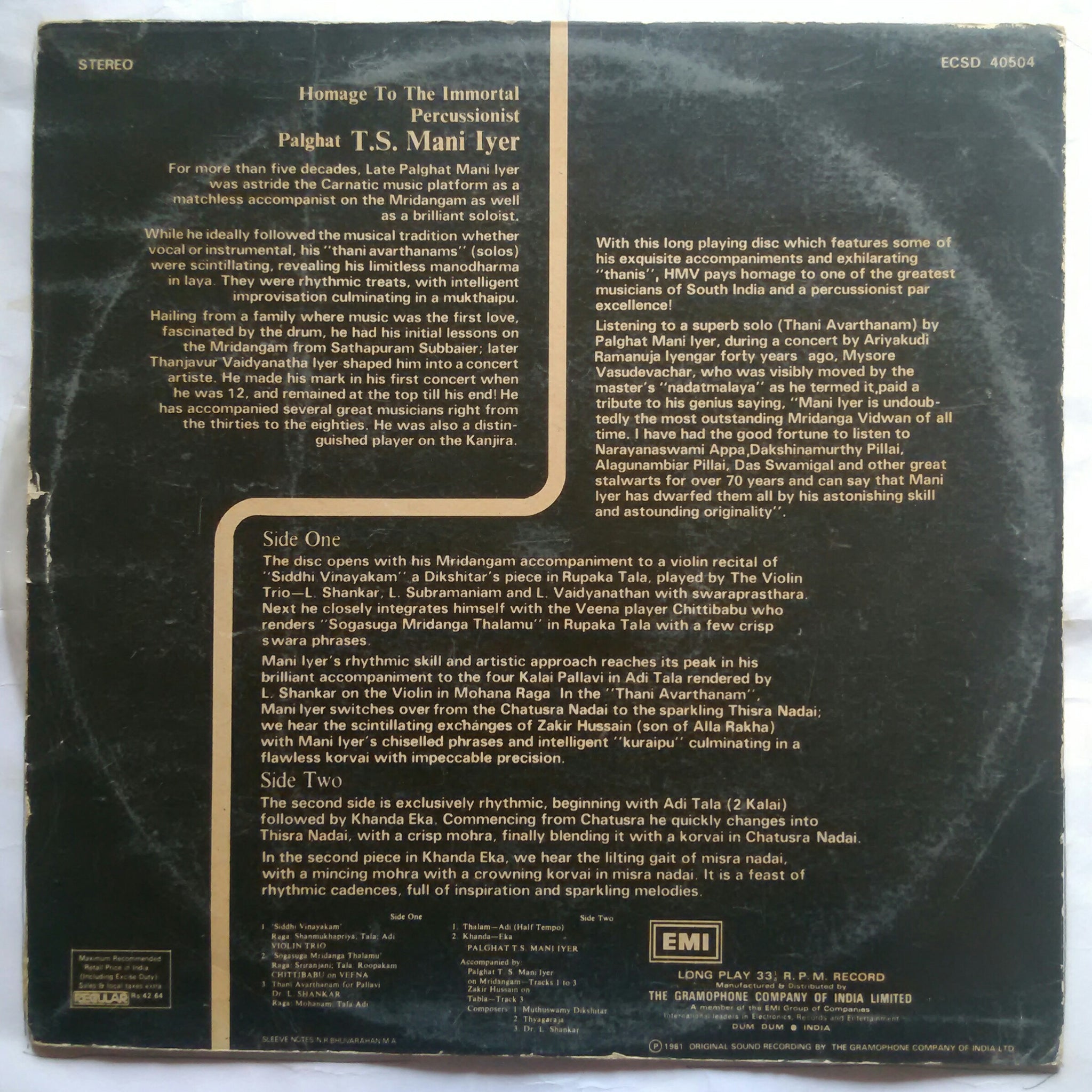 Homage to the Immortal Percussionist ( Palghat T. S. Mani Iyer )