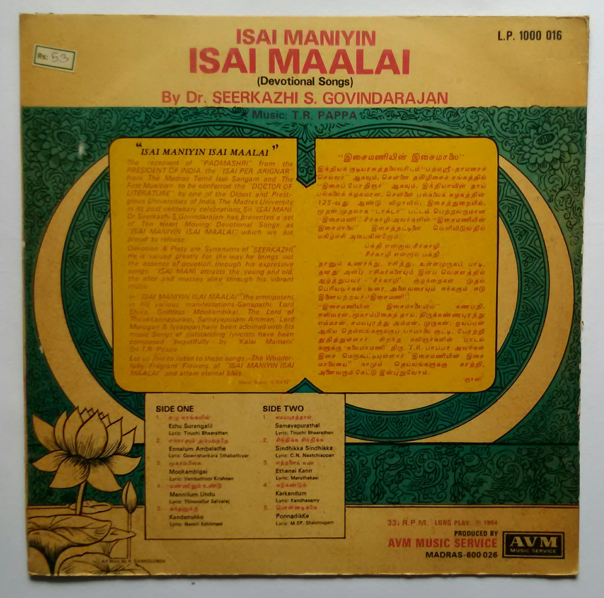 Isai Maniyin Isai Maalai ( Devotional songs ) By Dr. Seerkazhi S. Govindarajan