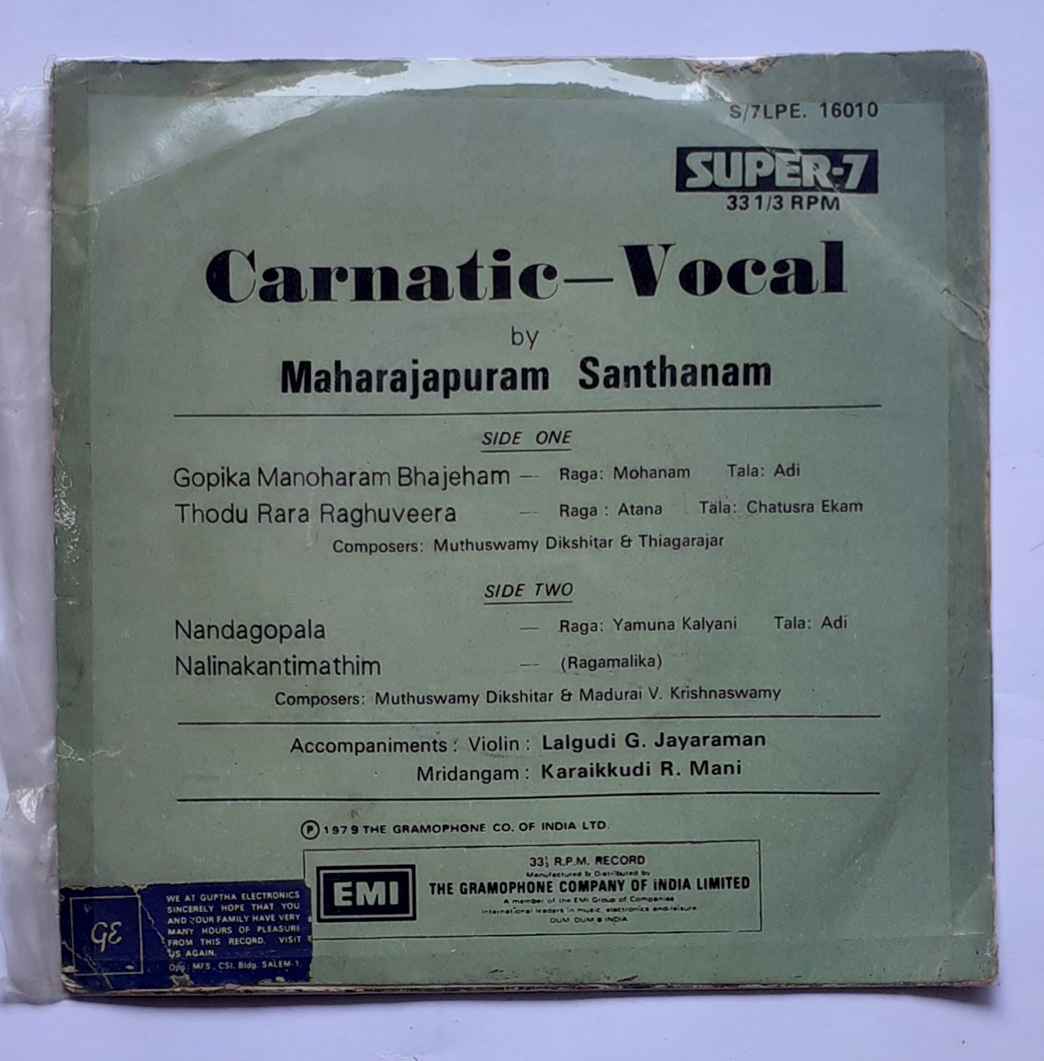 Maharajapuram Santhanam " Carnatic - Vocal " ( Super-7 33/ RPM )