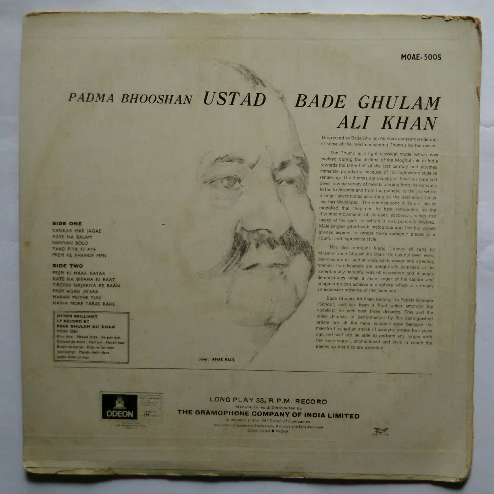 Padma Bhooshan Ustad Bade Ghulam Ali Khan " Featuring Aaye ne balam And Ten Others Enchanting Thumrees "