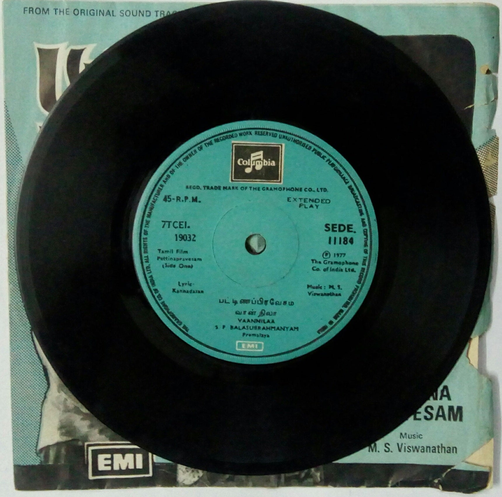 Ithuthan Bathil ( Super 7, 33/ RPM )" Music : M. S. Viswanathan " Side A : Anbagale , Side B : Vannap Pooncholai .