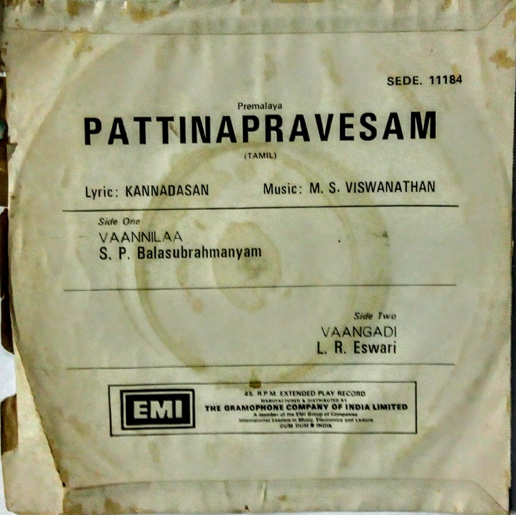 Vangaien Maindan ( Super 7 , 33/ RPM ) Music : Shankar - Ganesh " Side A : 1, Kannan Vaa , 2, Maama Kaiyappudi , Side B : 1, Aaduyeppoovay , 2, Kanna Vaa .