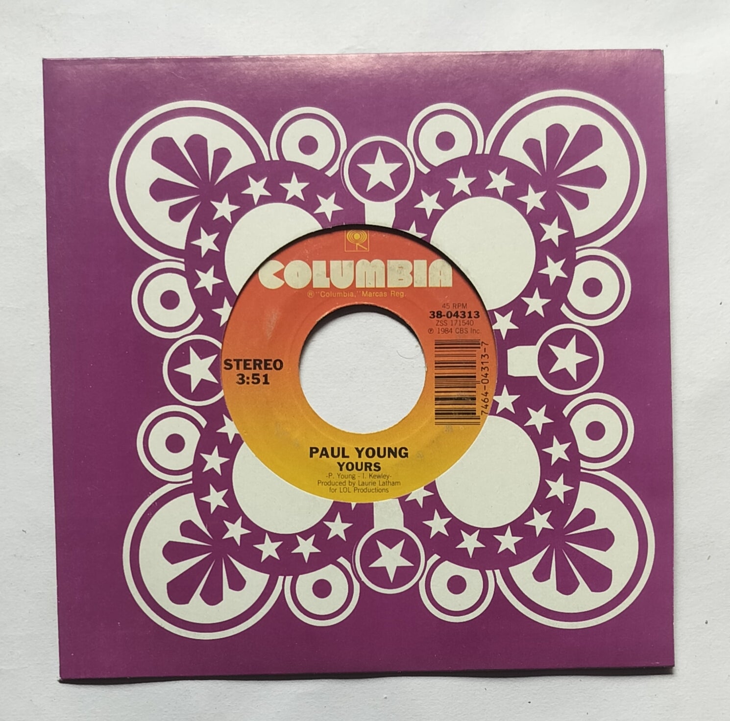 Paul Young " EP, 45 RPM " Side A : Yours , Side B : Come Back And Stay .