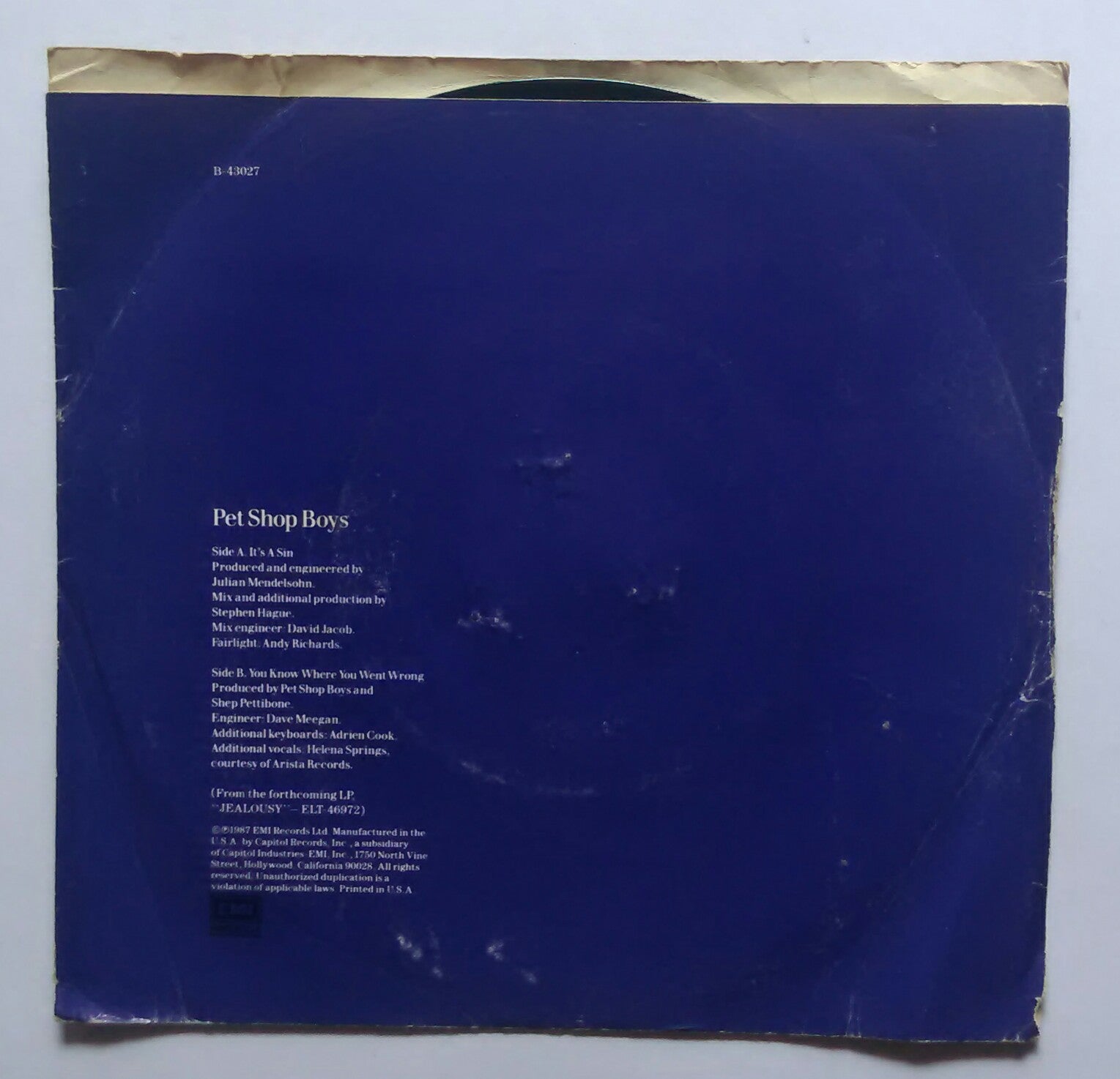Pet Shop Boys - " It's A Sin , You Know Where You Went Wrong . ( EP , 45 RPM )
