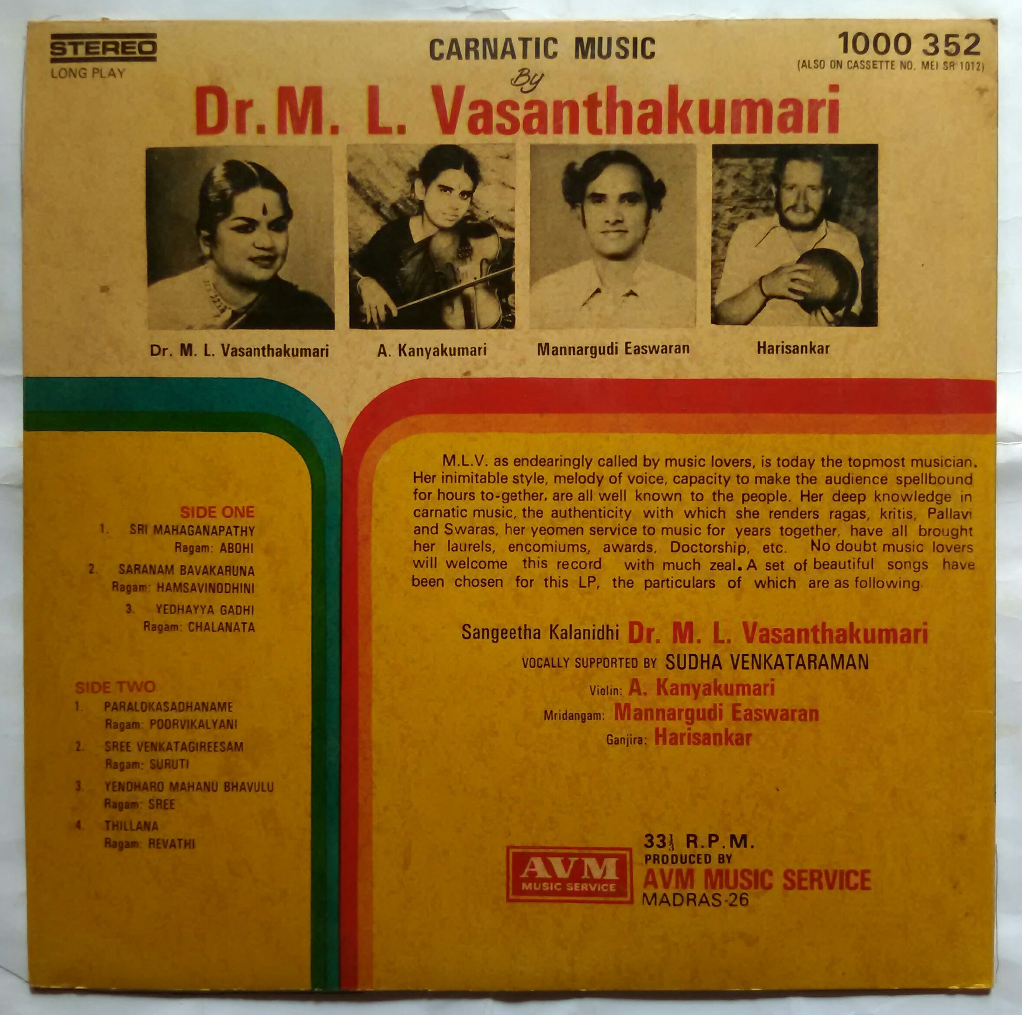 Sangeetha Kalanidhi M. L. Vasanthakumari : Carnatic music
