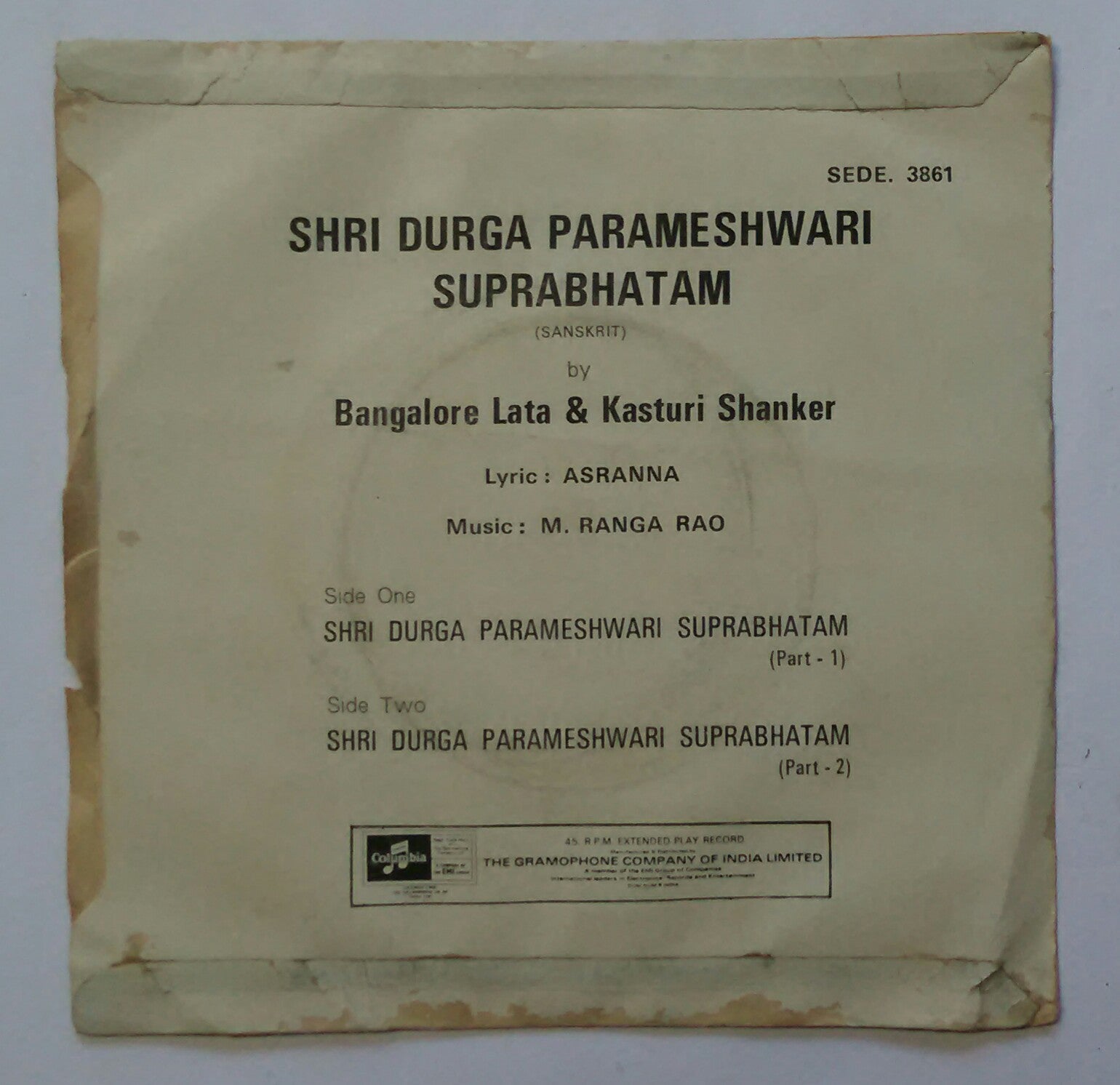 Shri Durga Parameshwari Suprabhatam " Sanskrit " ( EP , 45 RPM )