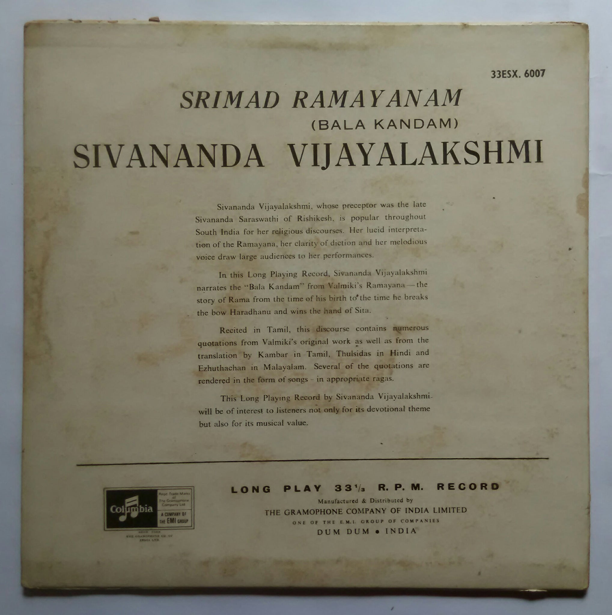 Srimad Ramayanam ( Bala Kandam ) Sivananda Vijayalakshmi