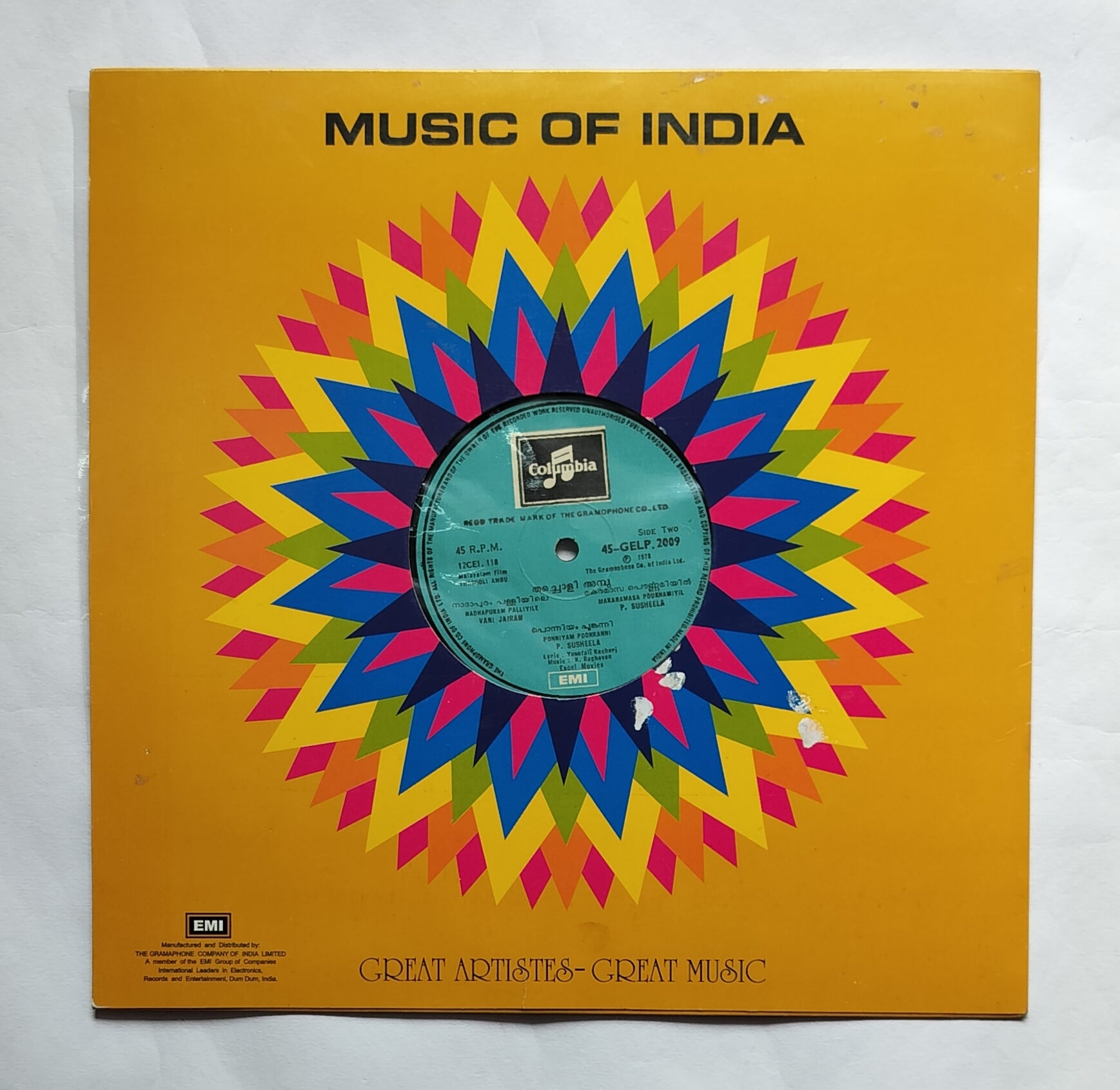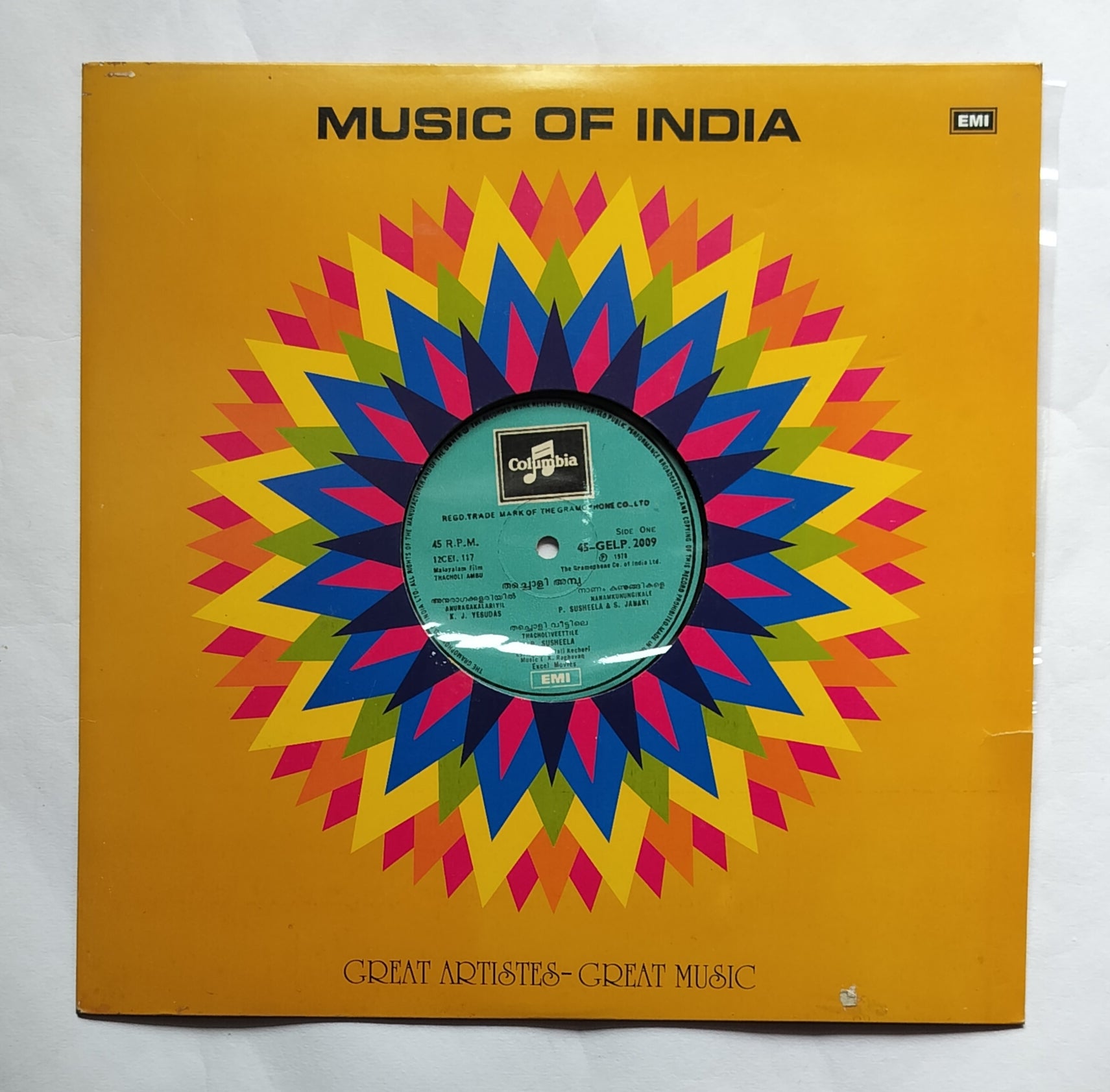Thacholi Ambu " LP , 45 RPM " Music : K. Raghavan " Malayalam Film "