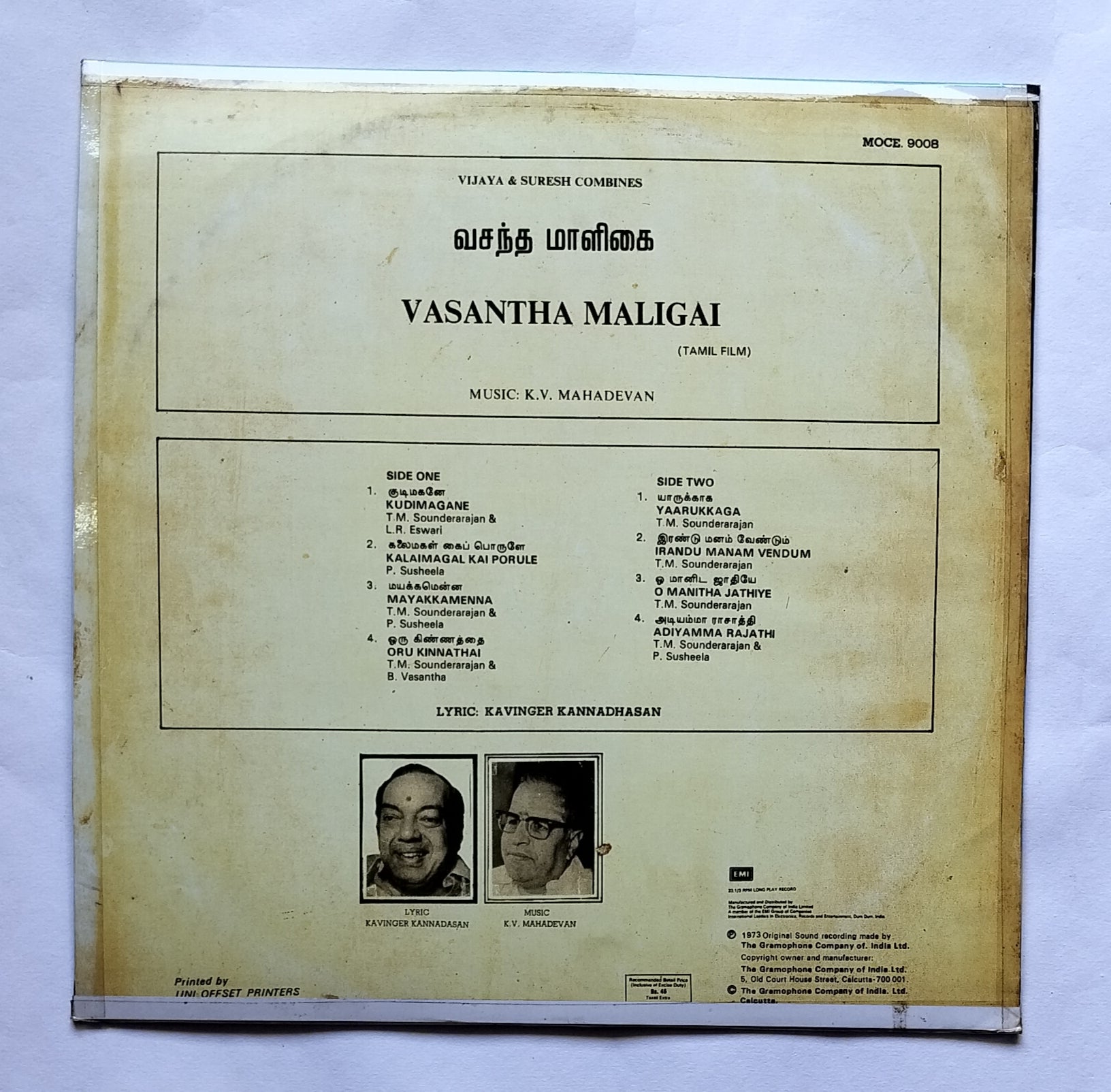 Vasantha Maligai "Music : K. V. Mahadevan " LP , 33/ RPM "
