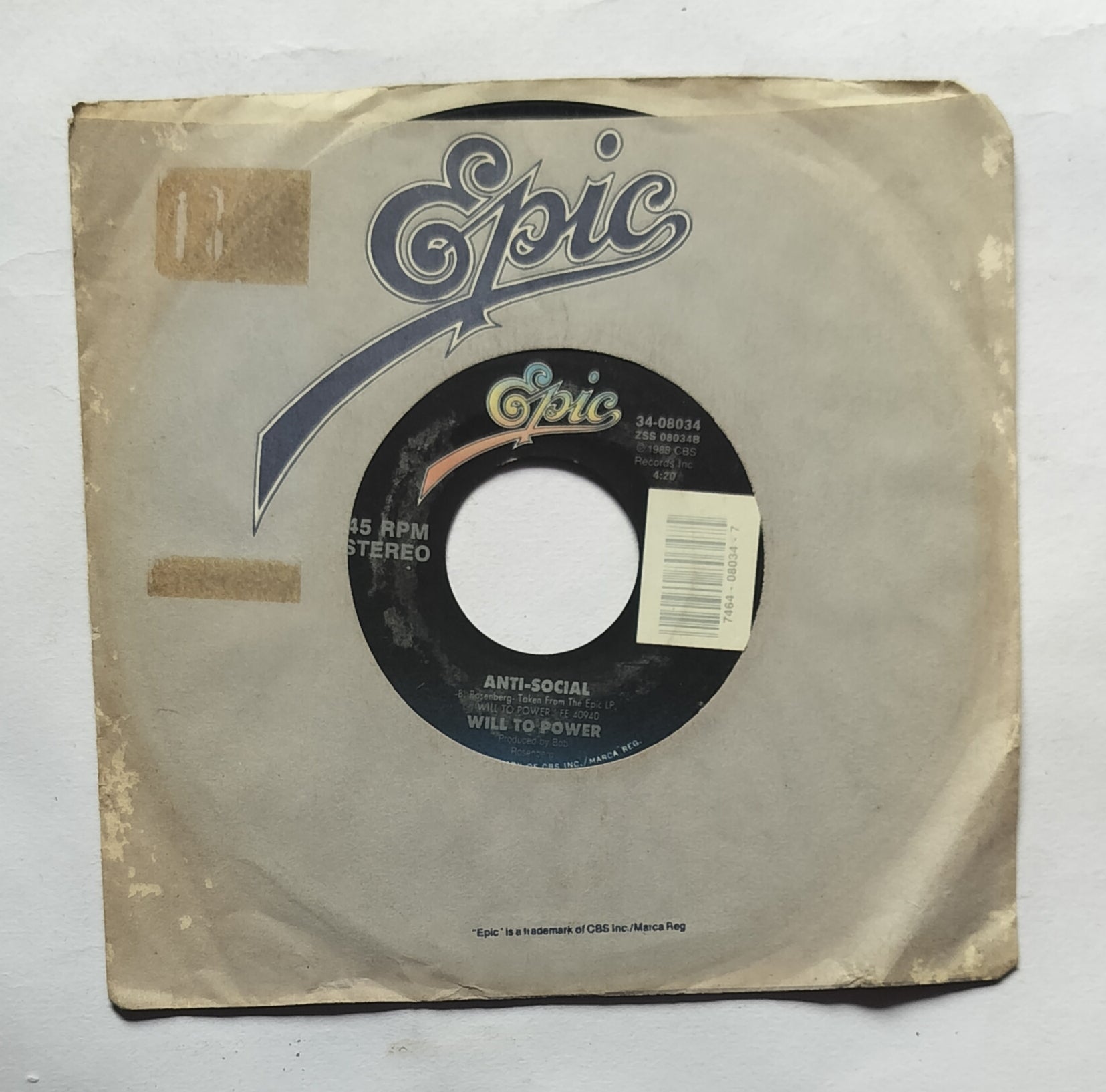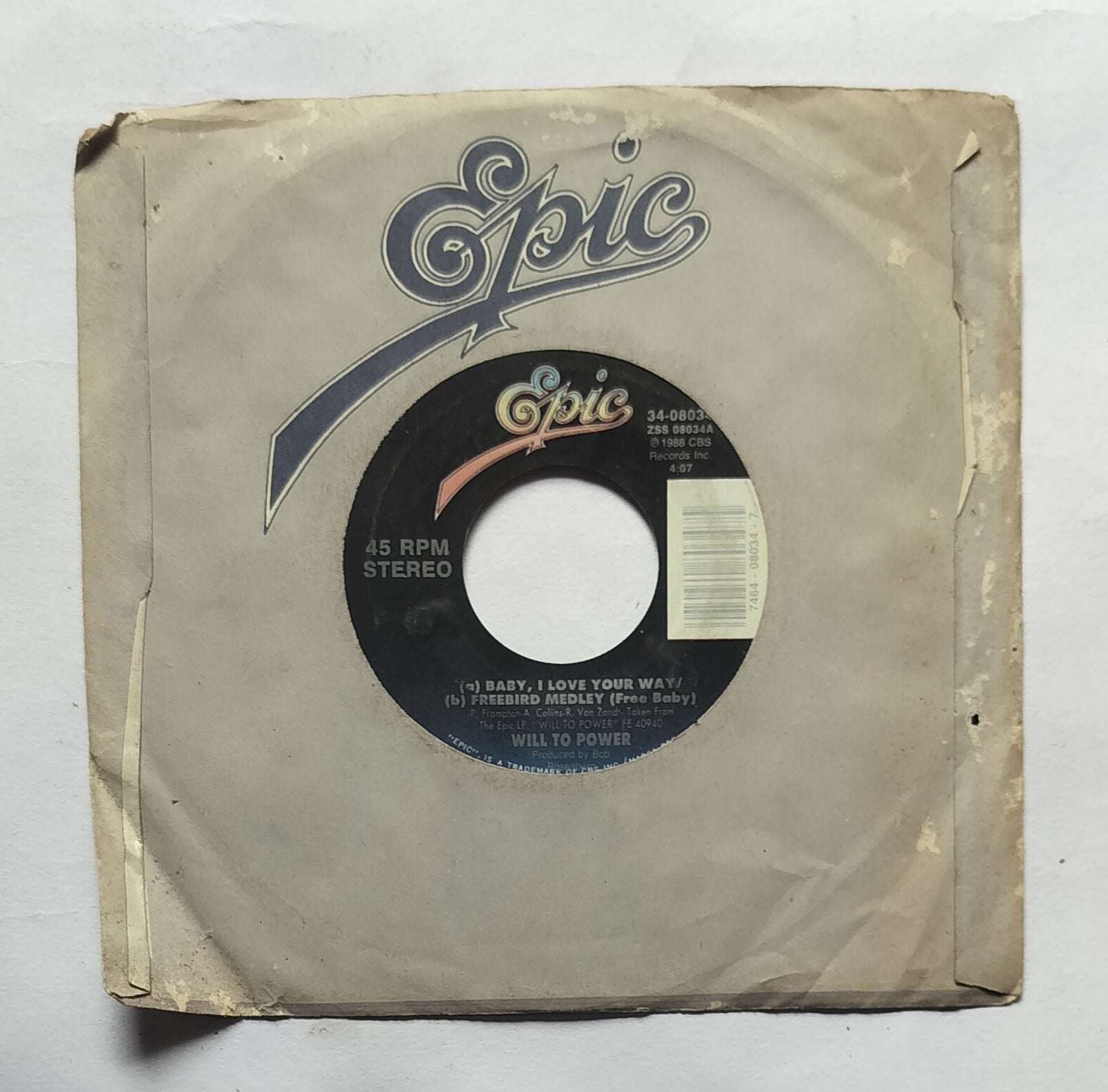 Will To Power " EP, 45 RPM " Side A : Baby, I Love Your Way, Side B : Anti-Social .
